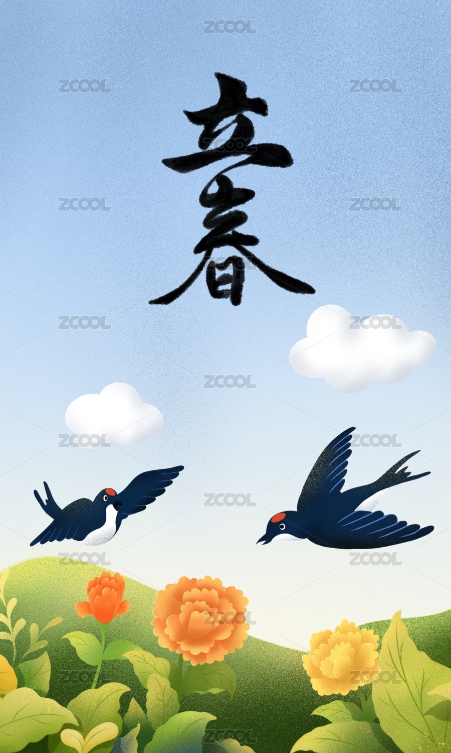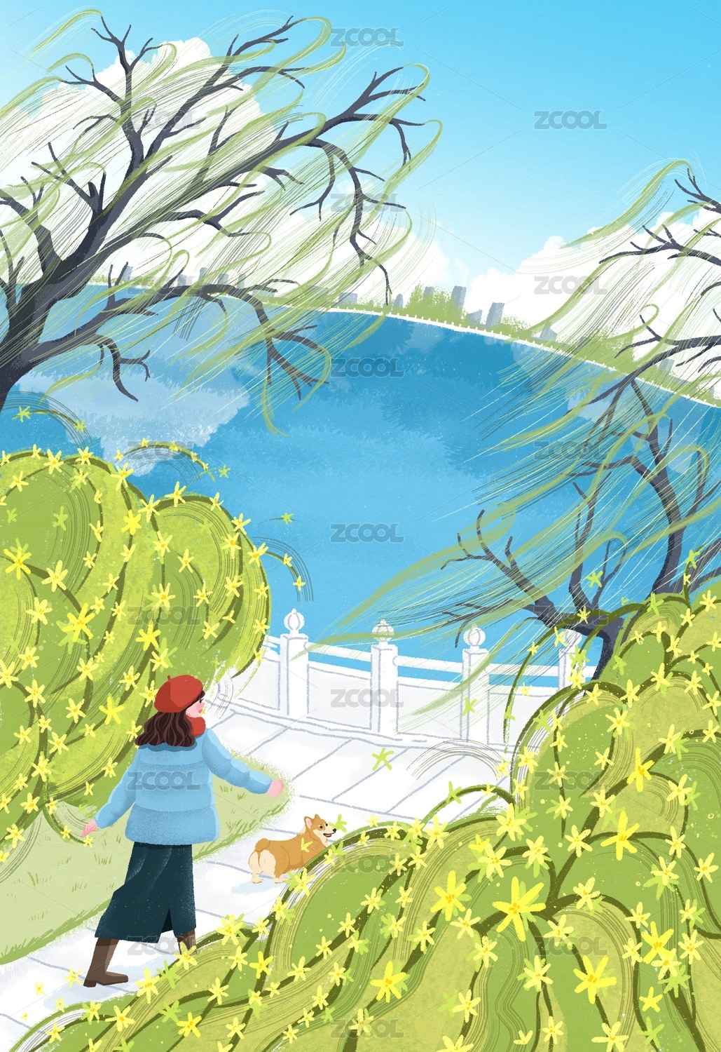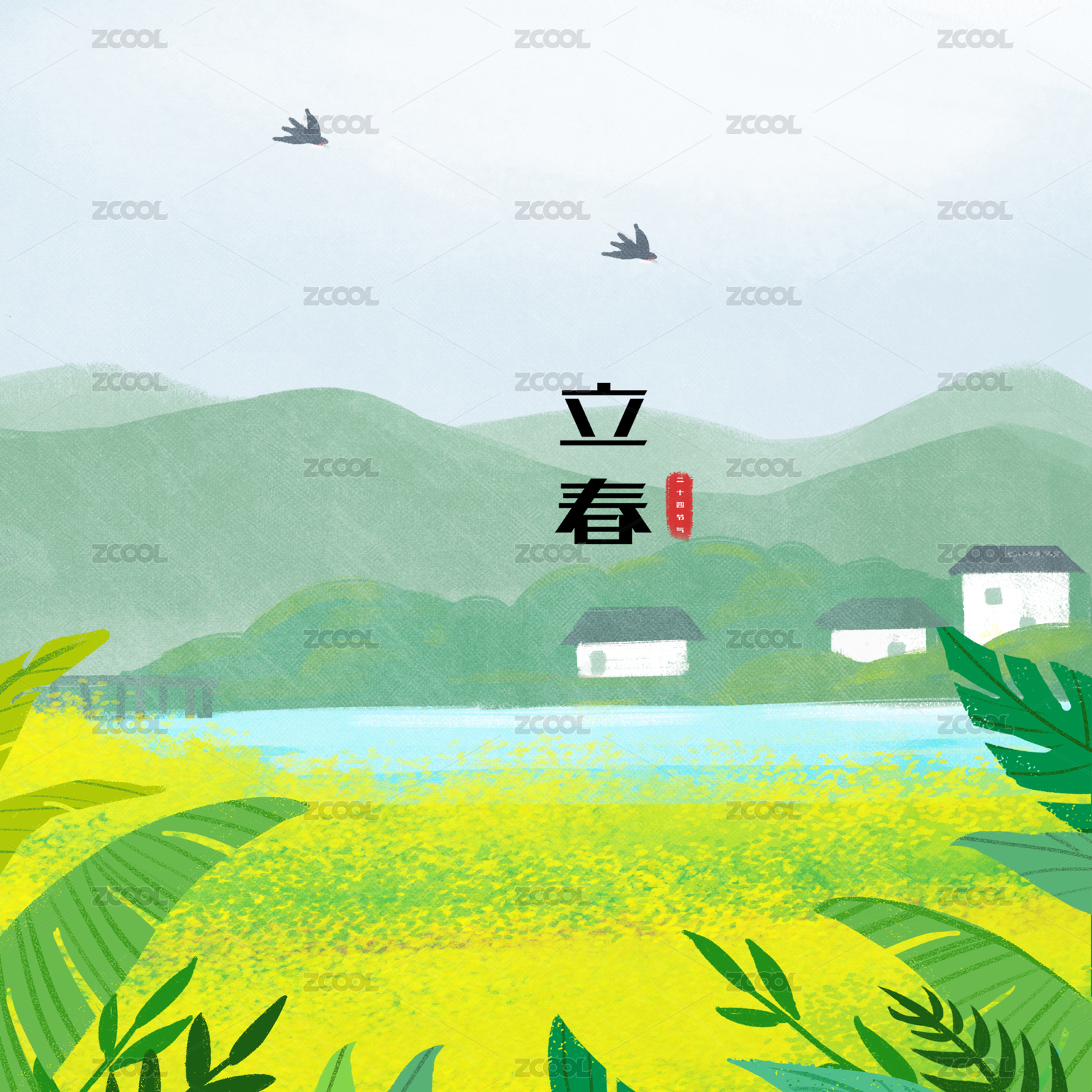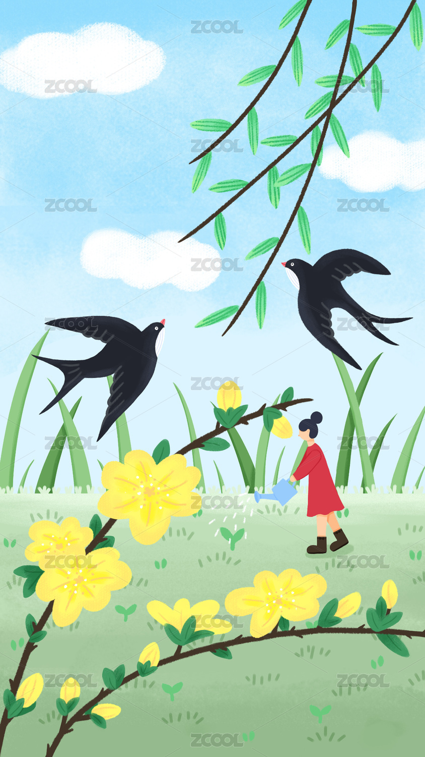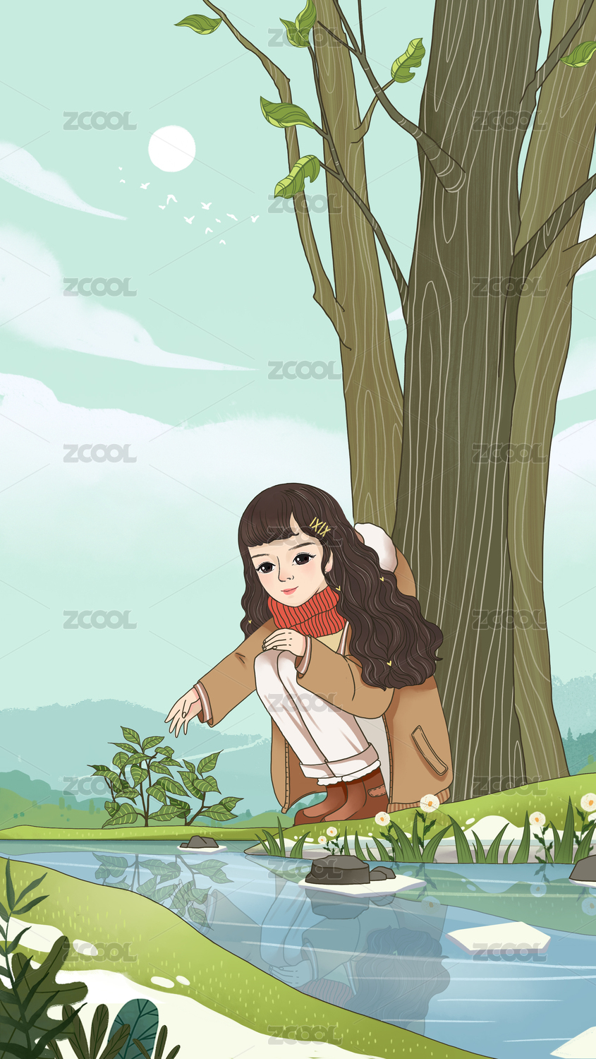 立春節(jié)氣春天男孩女孩共同呵護(hù)萌芽的植物