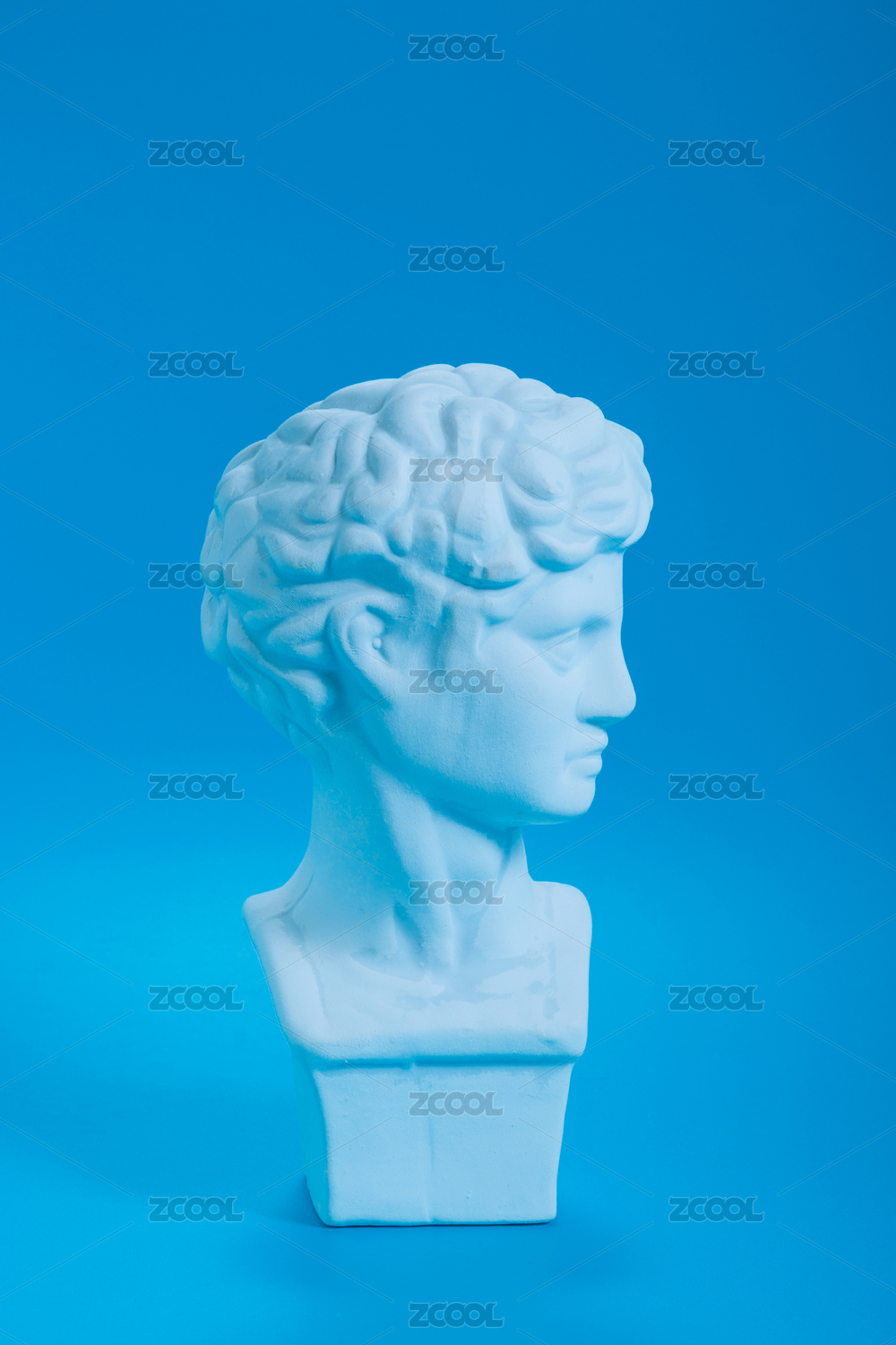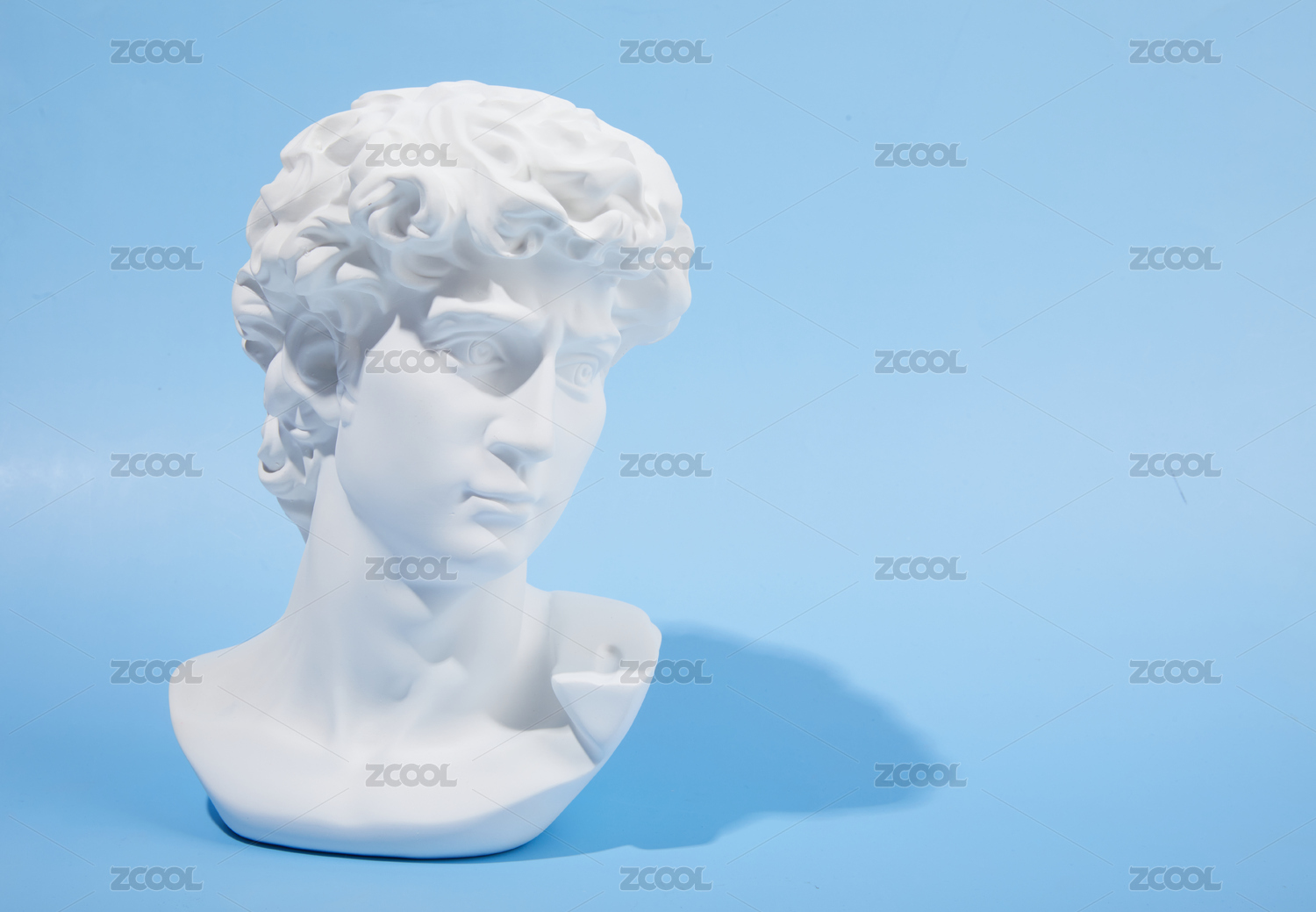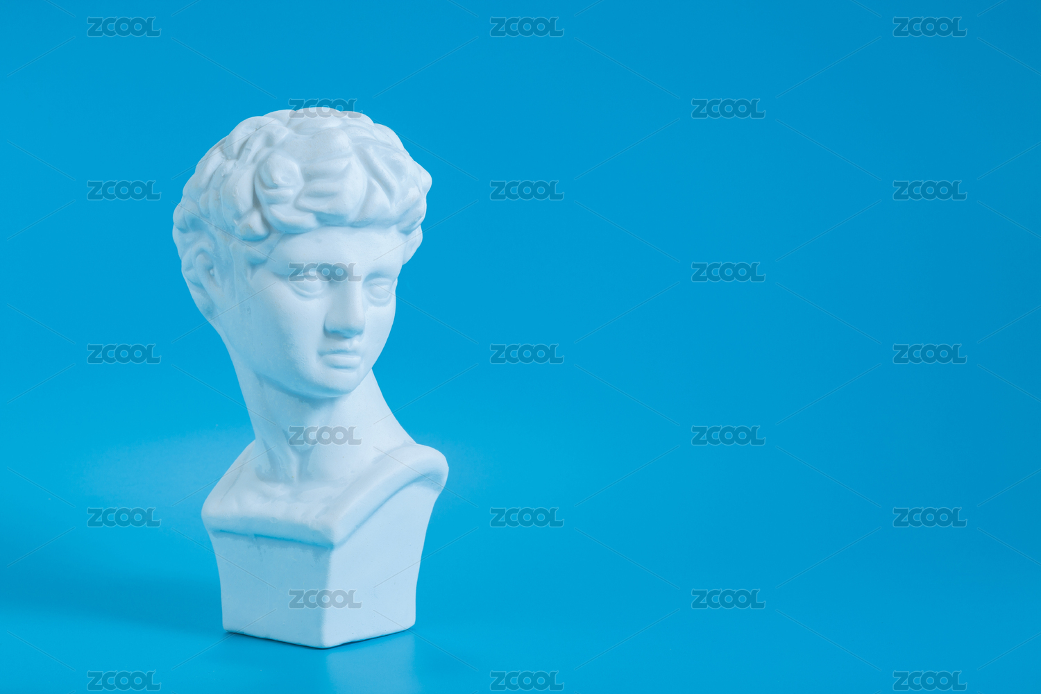古雅典石膏雕塑大衛(wèi)和藍(lán)色灰色的背景