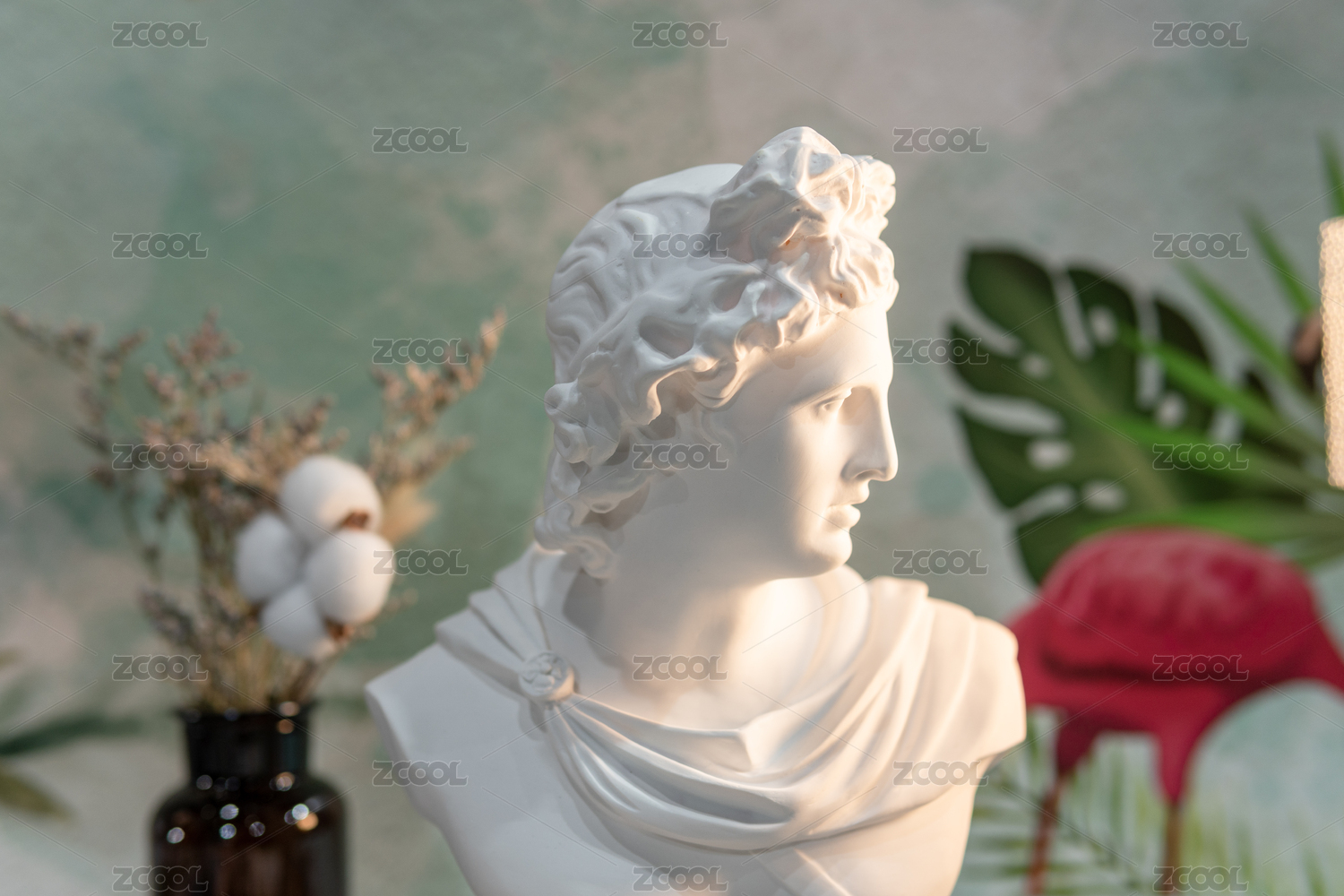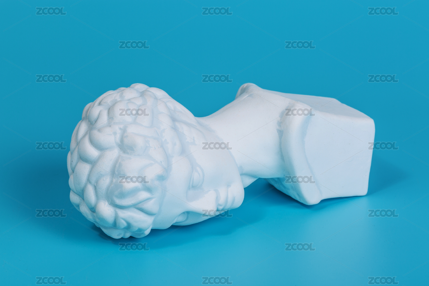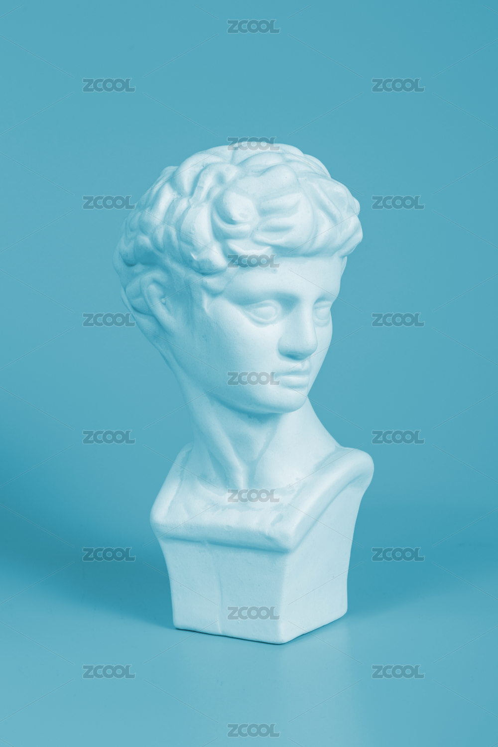 古雅典石膏雕塑大衛(wèi)和藍(lán)色灰色的背景