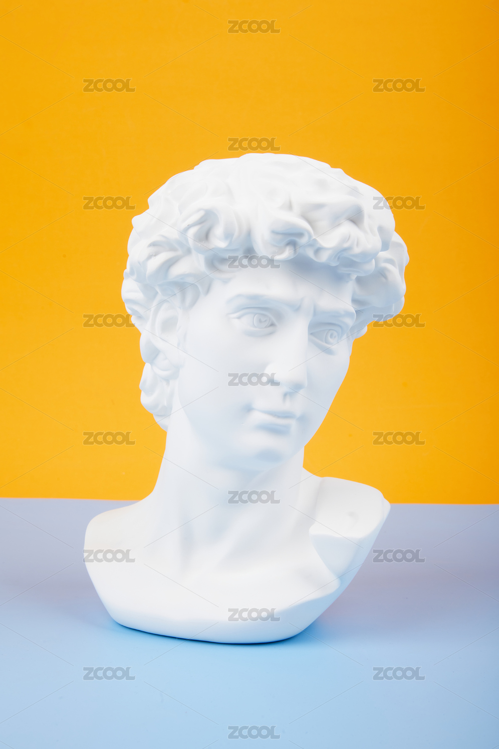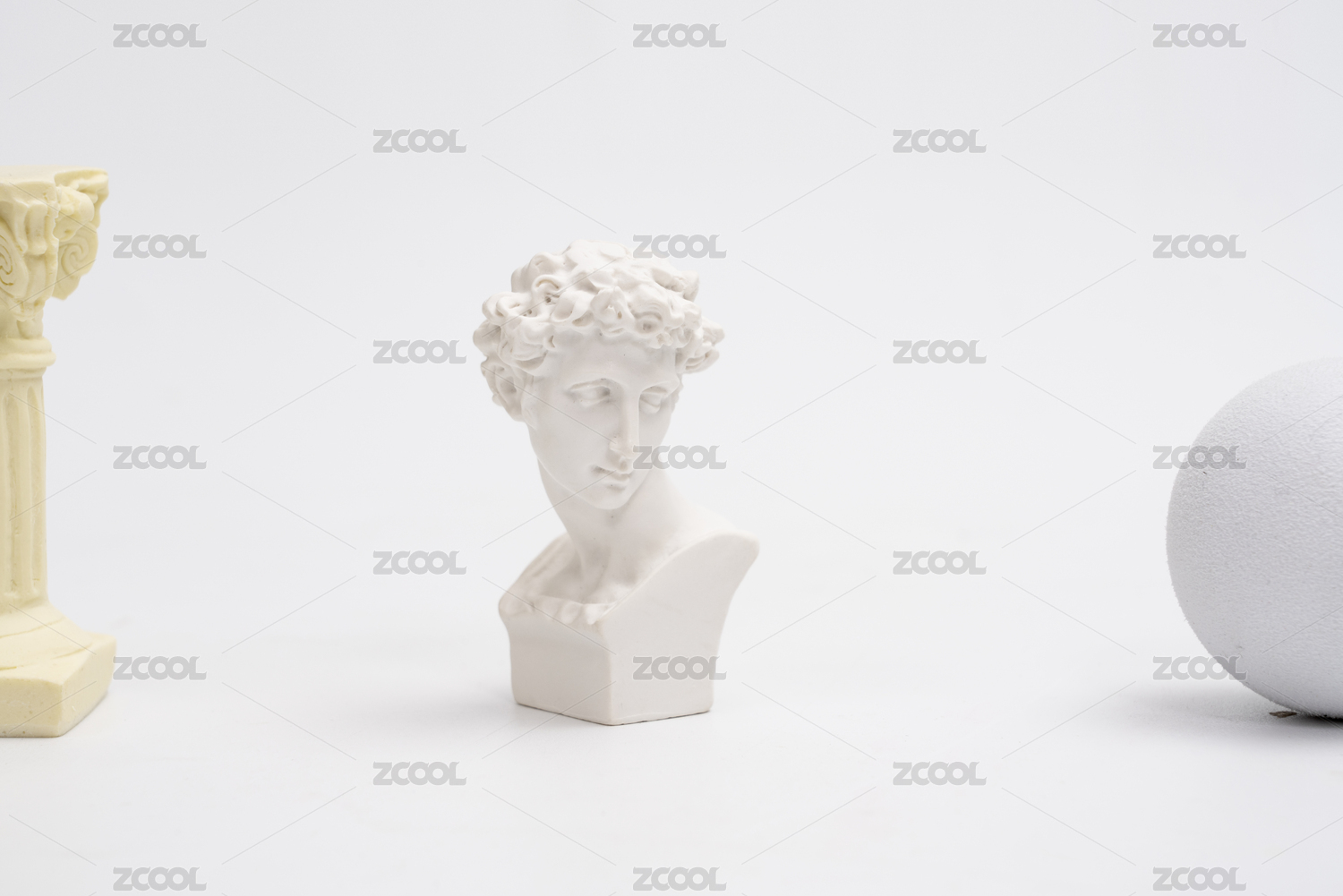 黃色小型羅馬柱大衛(wèi)頭像圓球在白色背景上