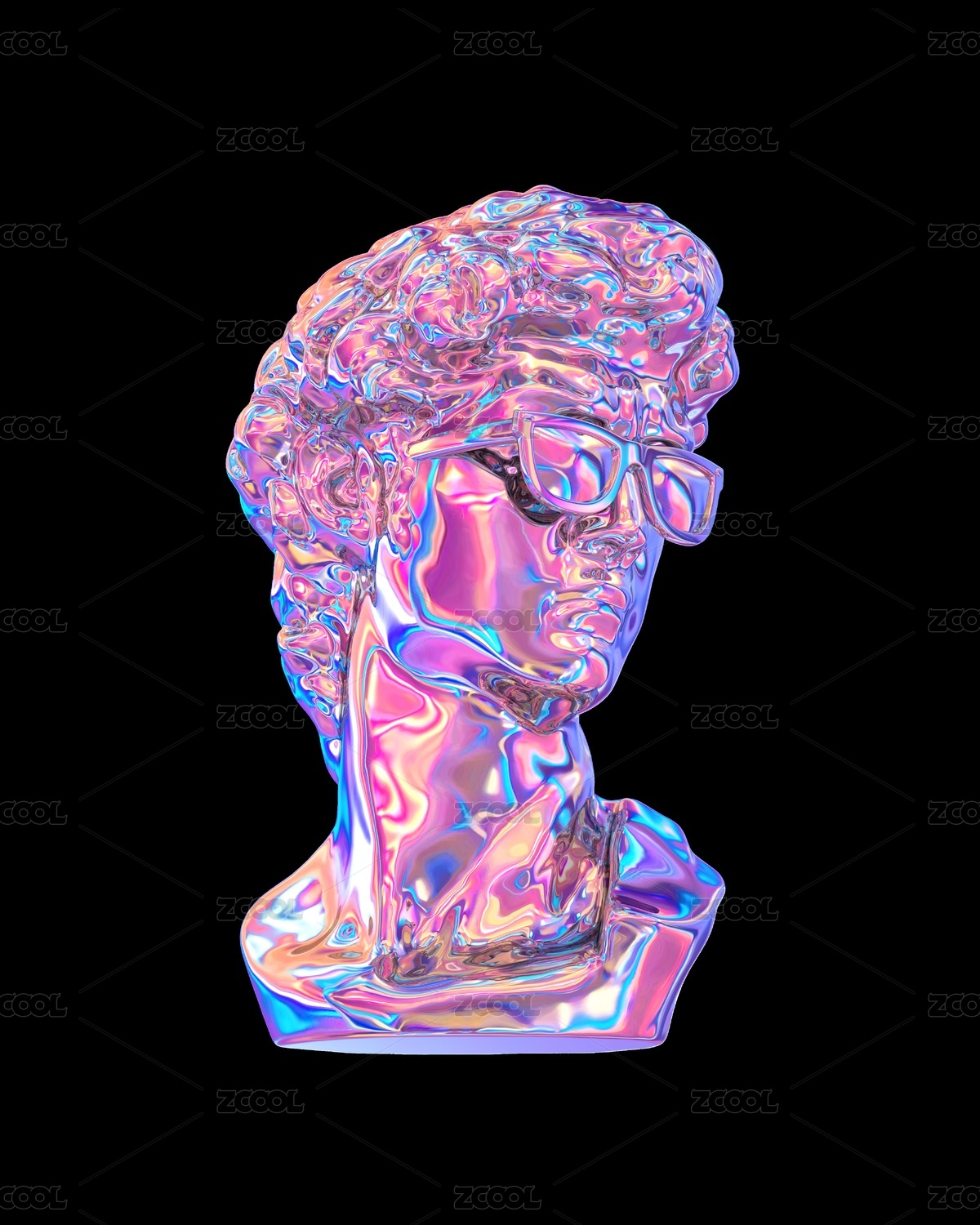 3D渲染的酸性風(fēng)大衛(wèi)雕塑