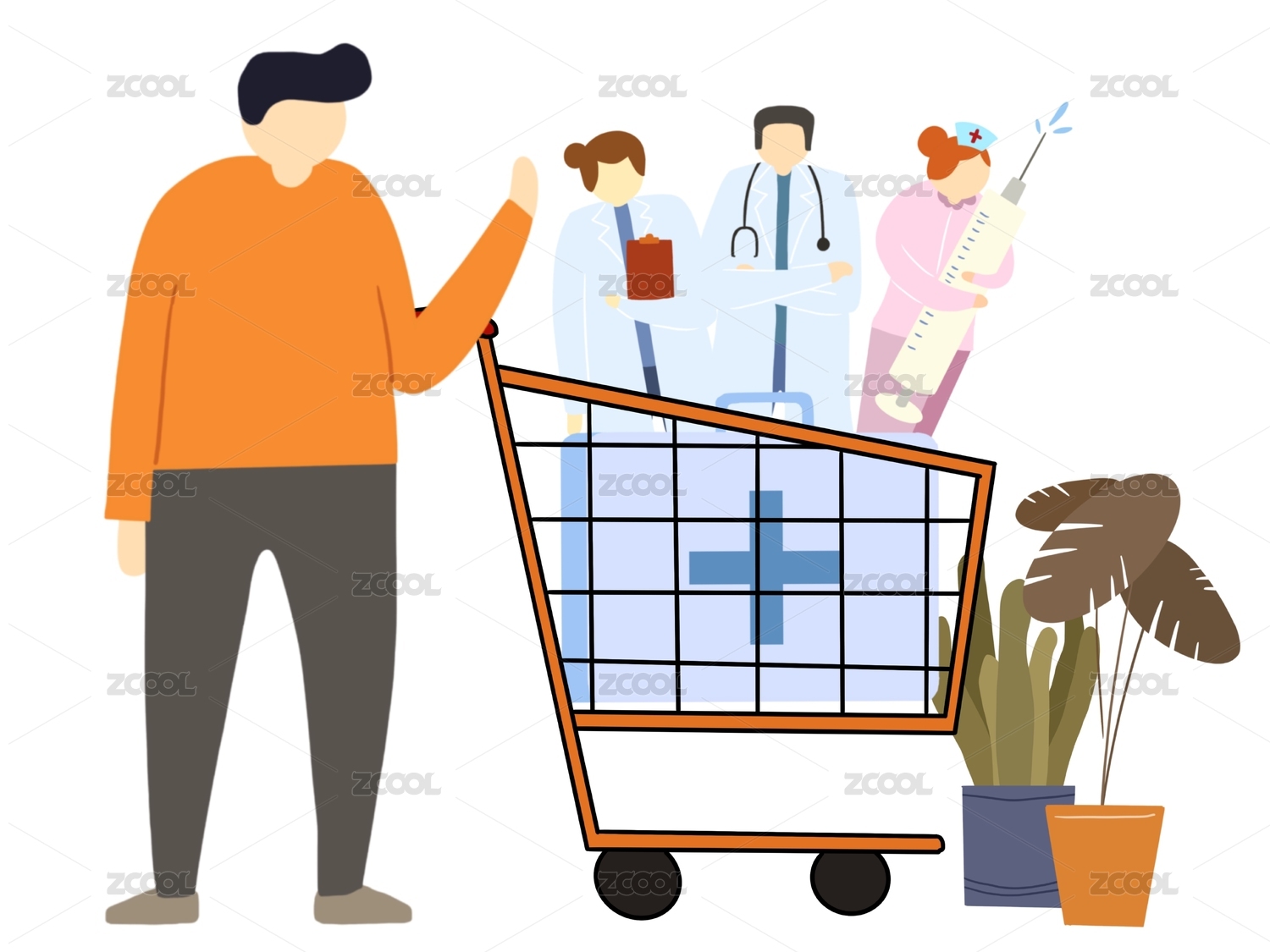 扁平化手繪醫(yī)療機(jī)構(gòu)禮品素材圖