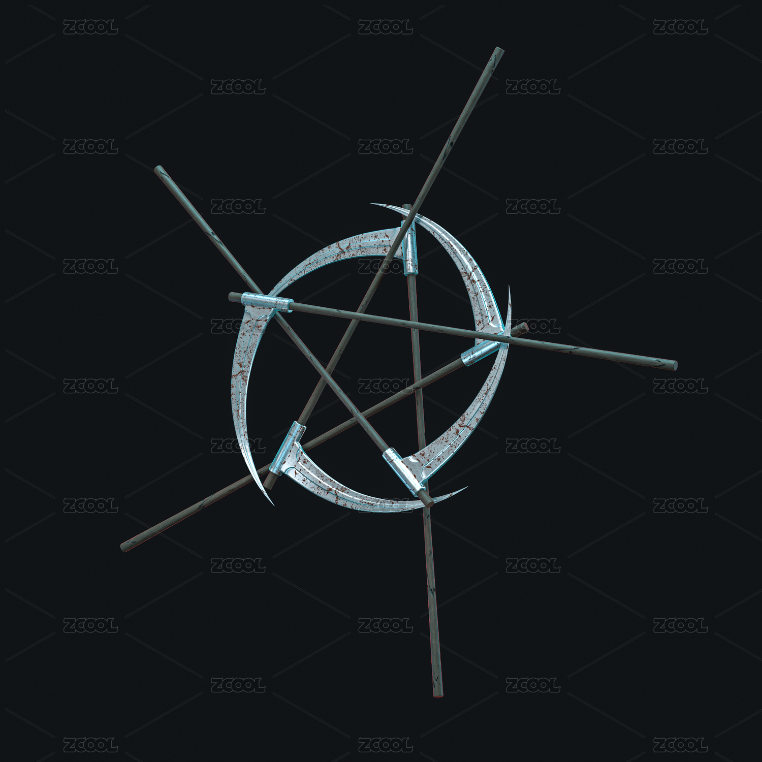 鐵鍬鐮刀鋤頭斧子除草工具手繪插畫(huà)