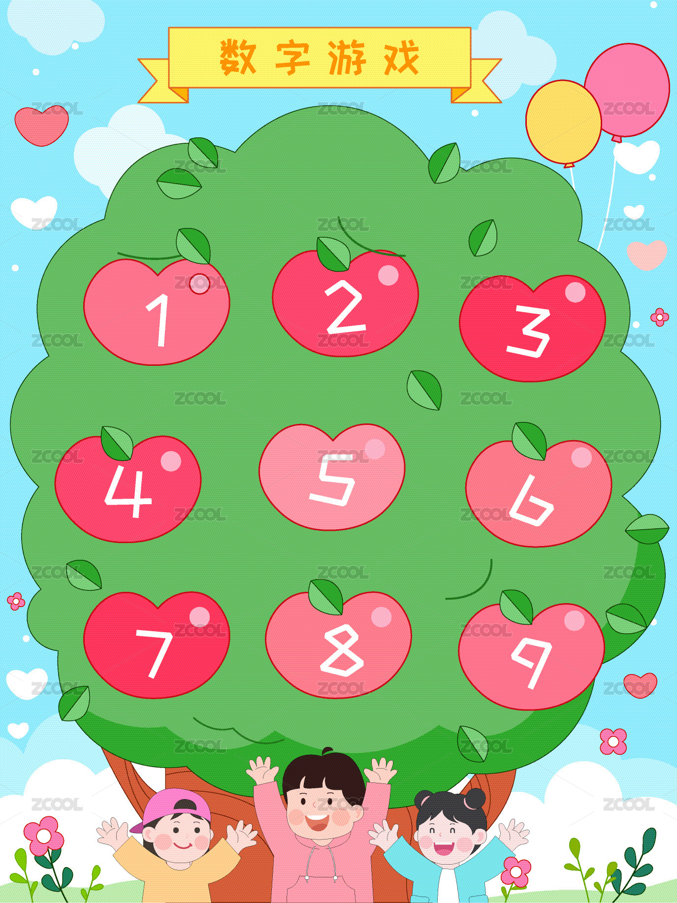 兒童數(shù)學課趣味蘋果樹數(shù)字游戲啟蒙教育插畫