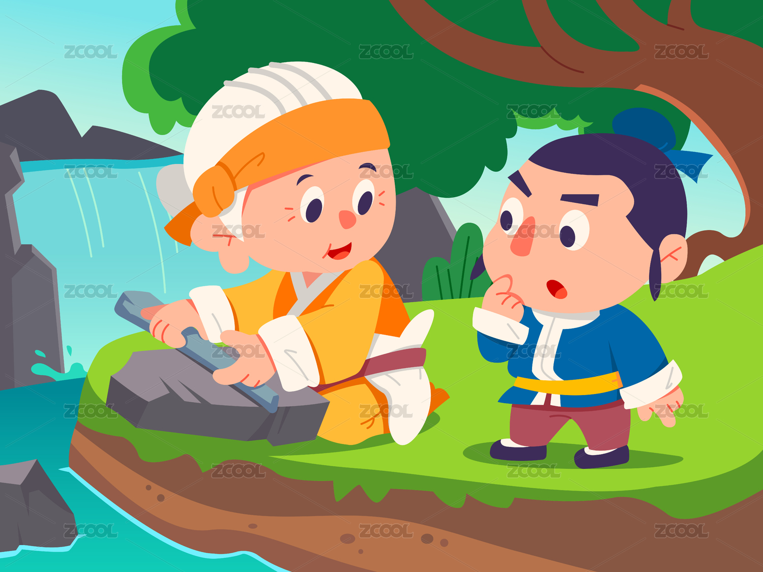 兒童插畫成語故事鐵杵成針