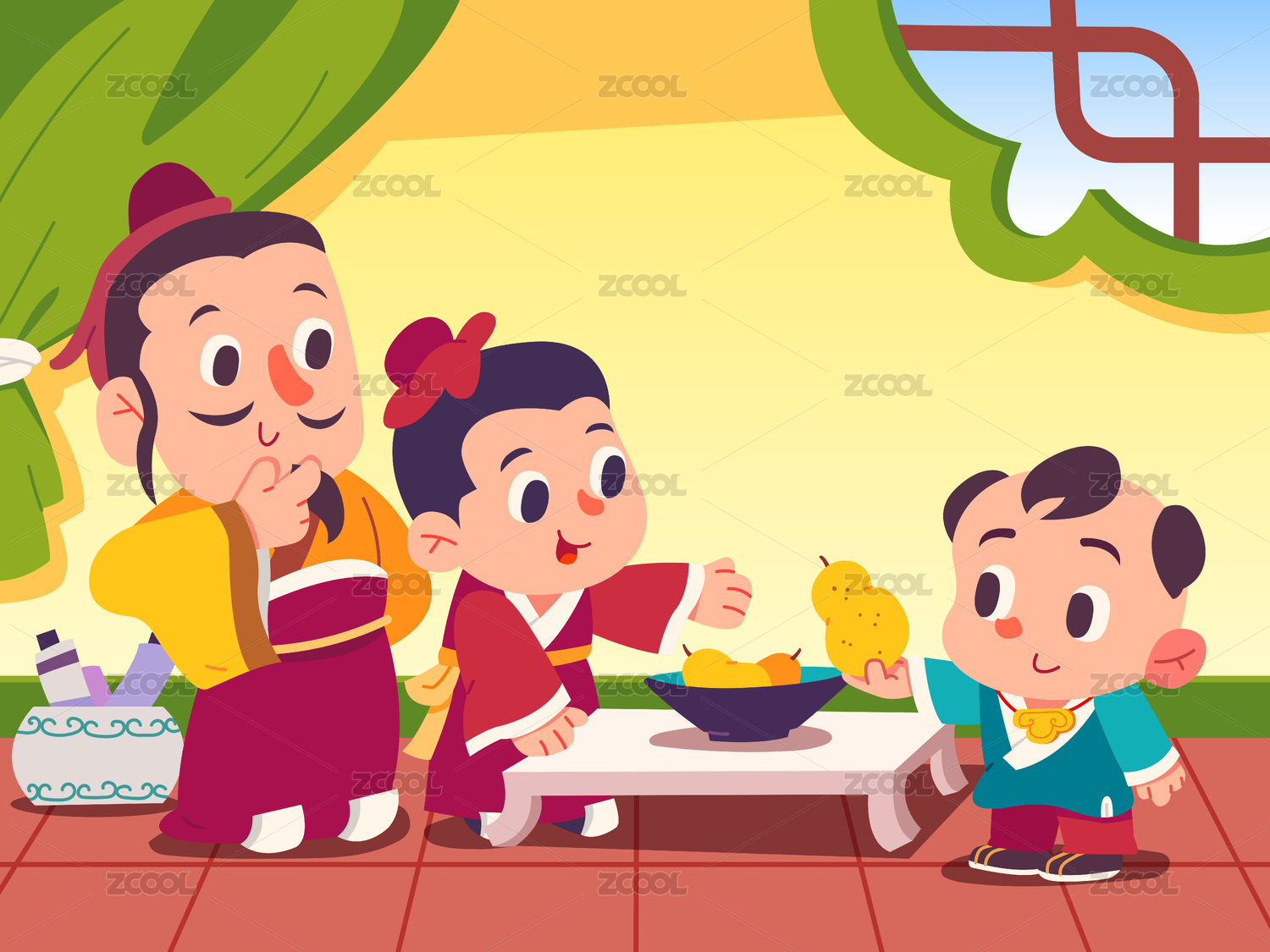 兒童插畫成語故事孔融讓梨