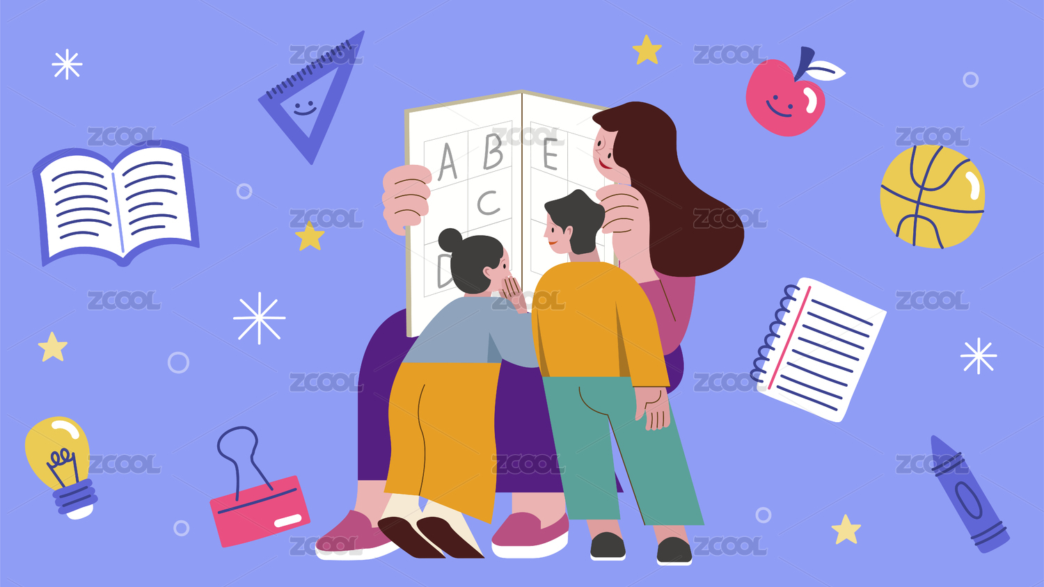 卡通手繪英語學習人物插畫