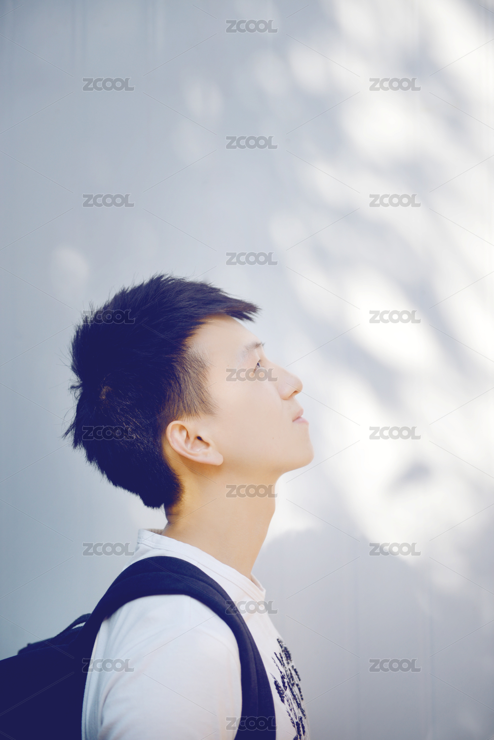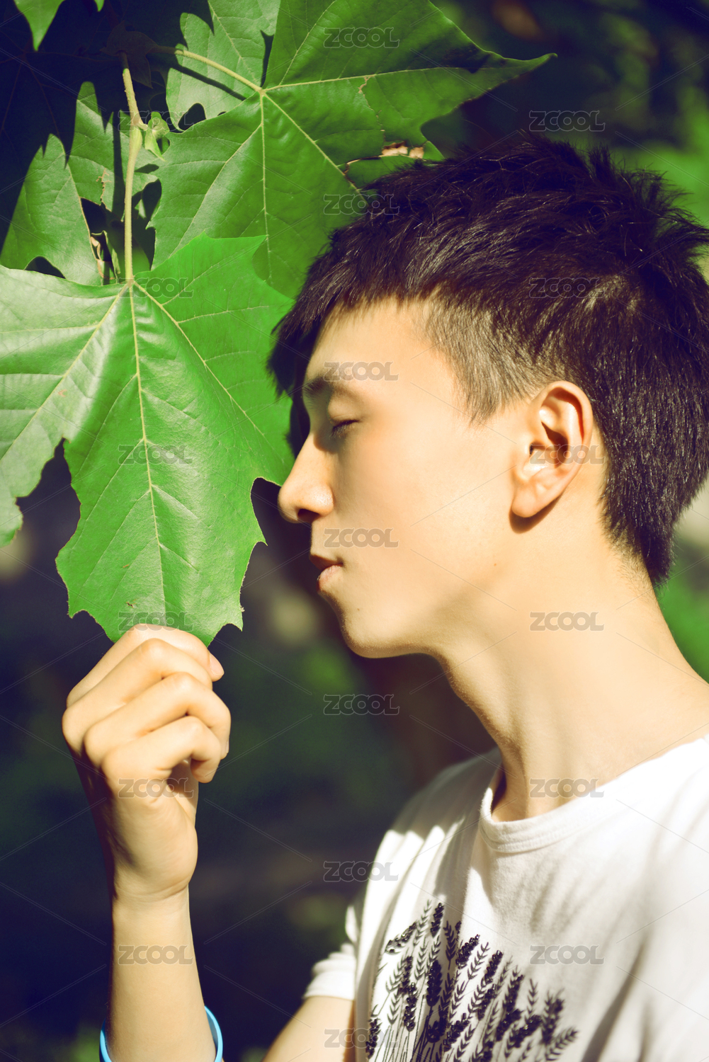 夏天男孩白衣服側(cè)臉低頭閉眼睛