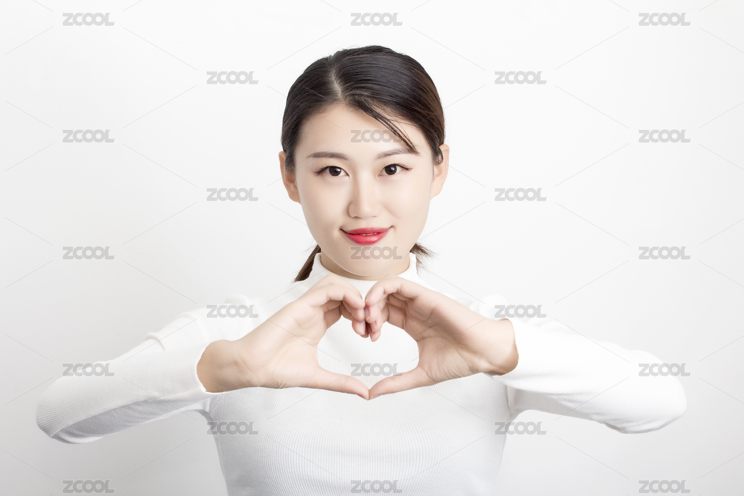 穿白衣服比心的女生