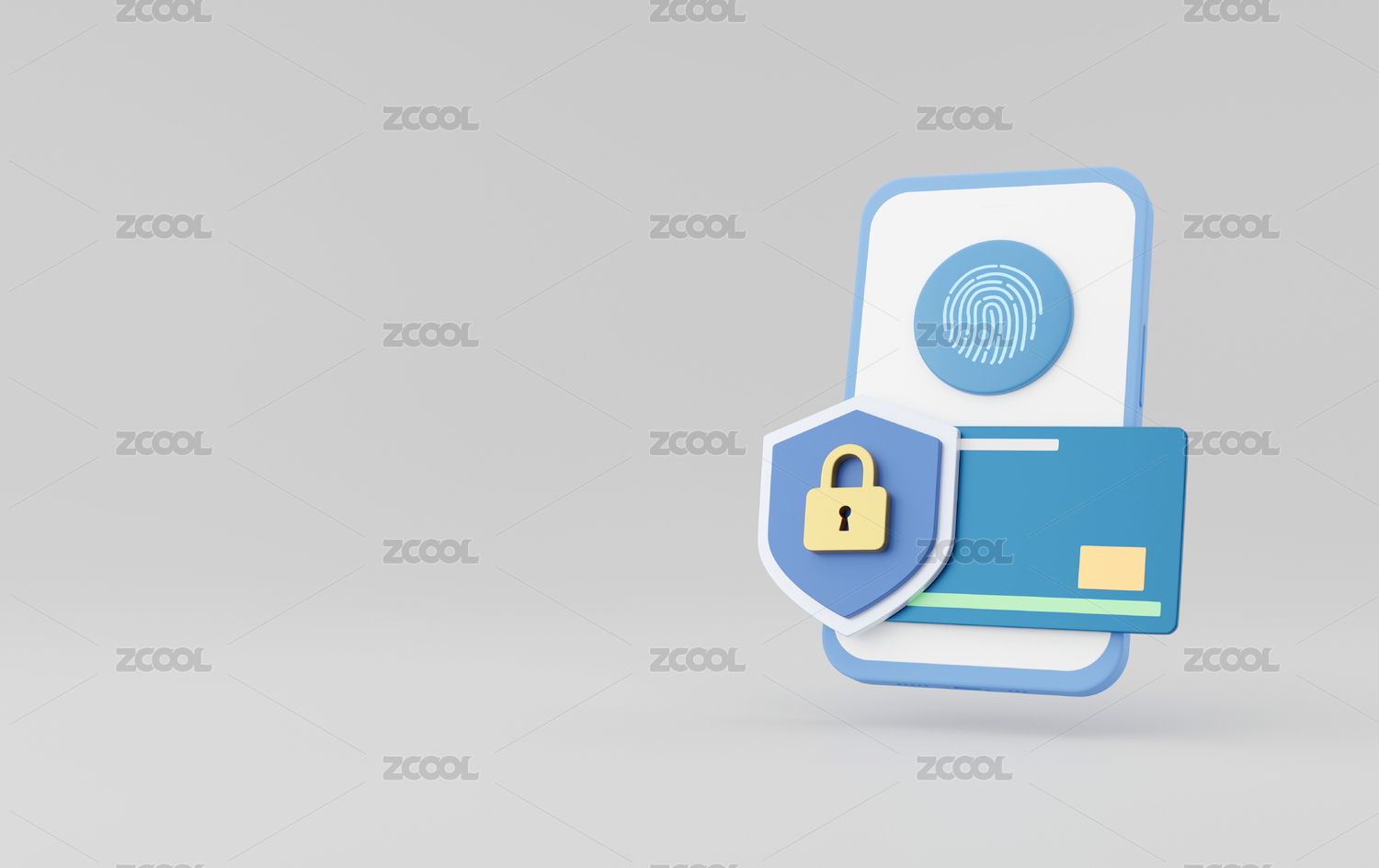 3D指紋識(shí)別手機(jī)綁銀行卡安全防盜防騙素材