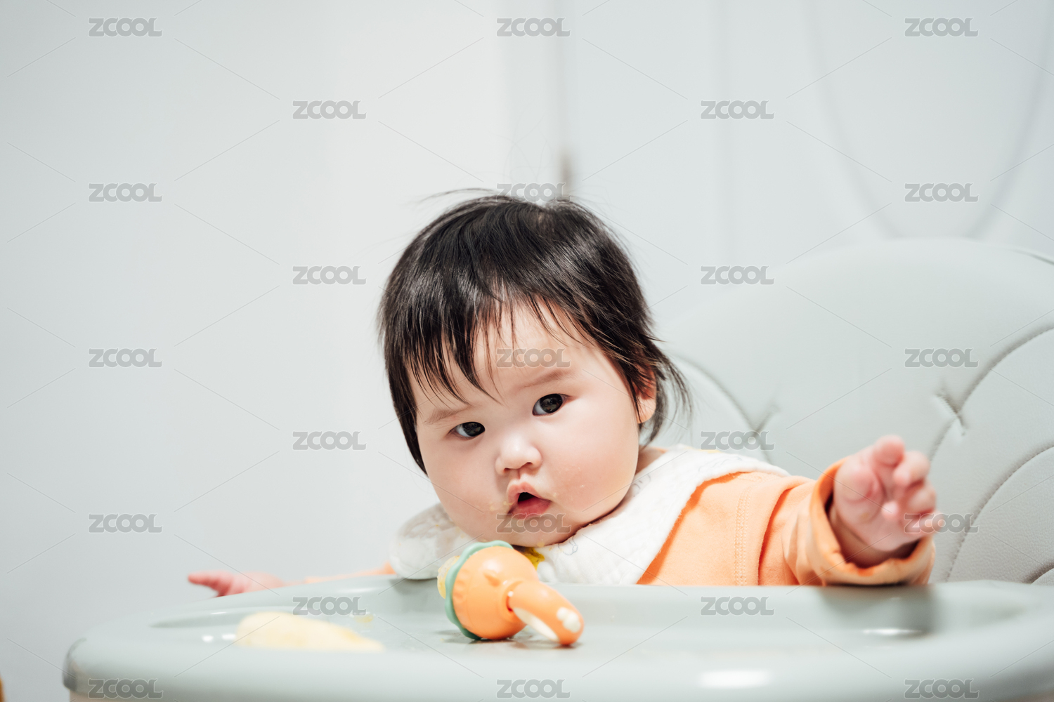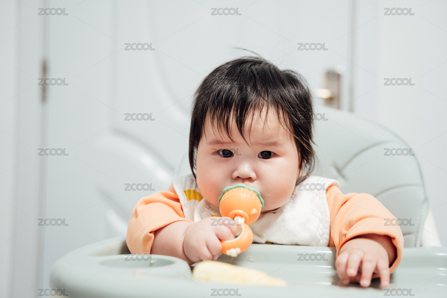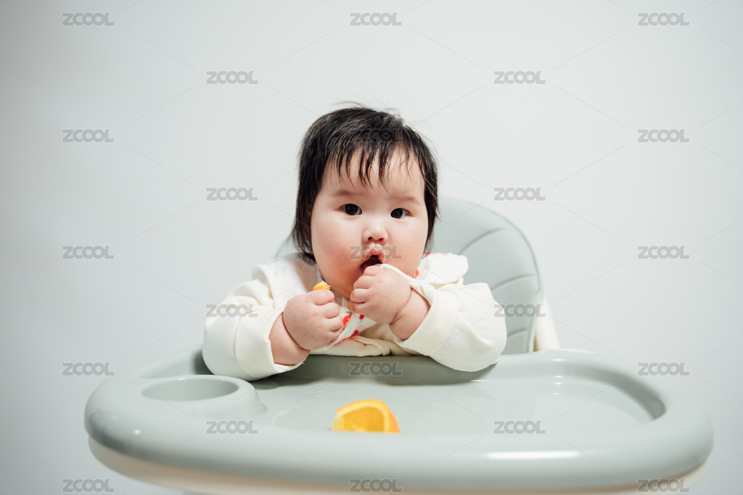 6個月的女嬰正在吃水果