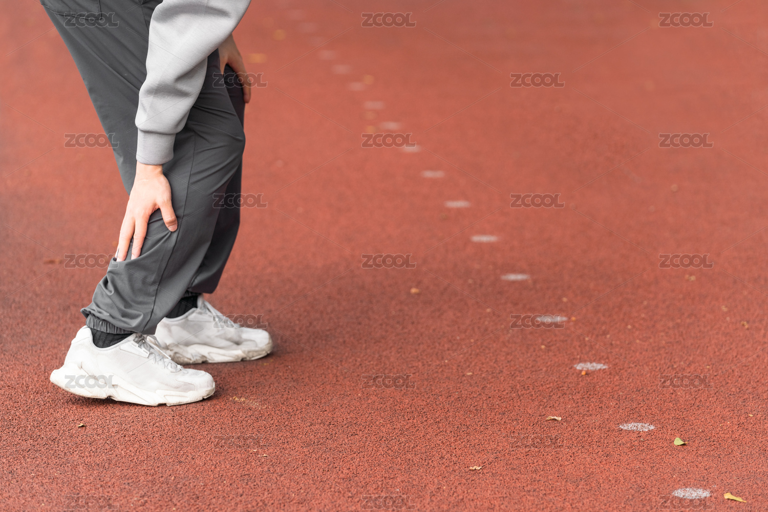 手按住小腿肌肉的局部特寫