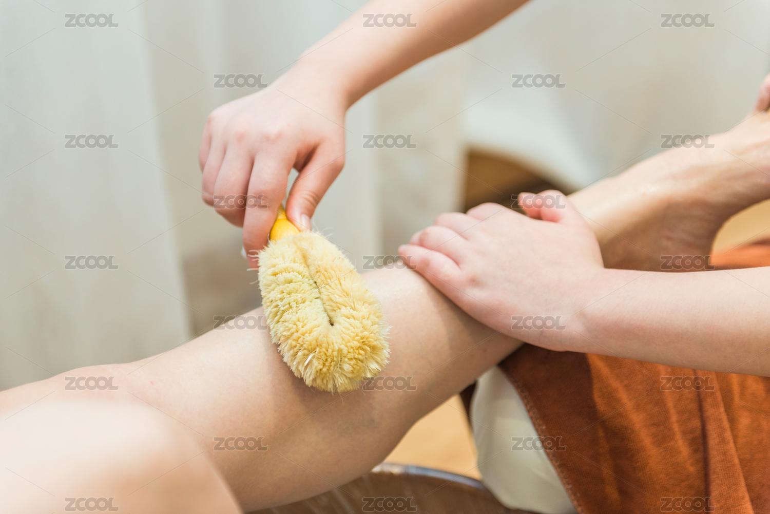 使用純天然鬃毛刷清潔小腿肌膚
