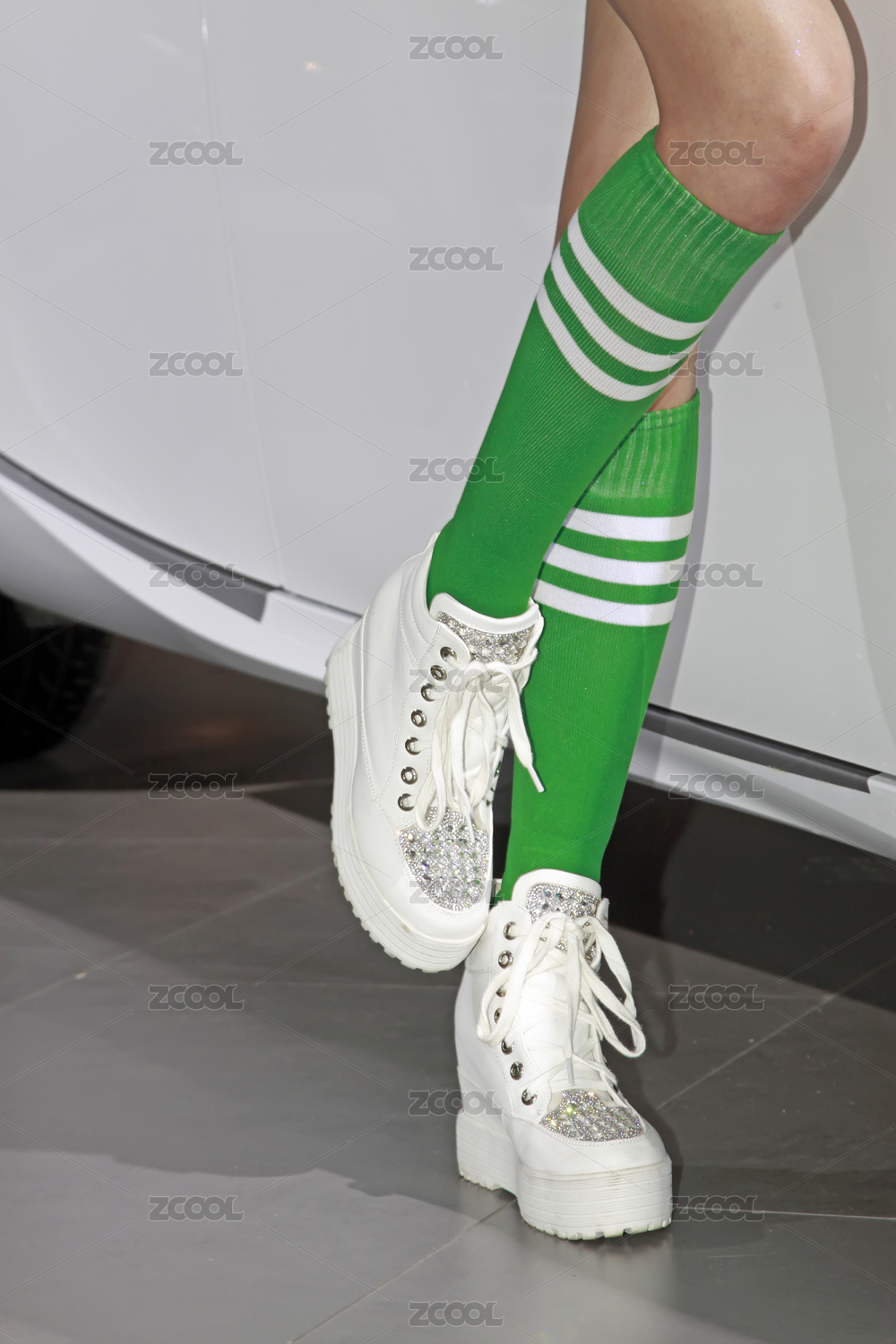 綠色長襪搭配白色厚底鞋