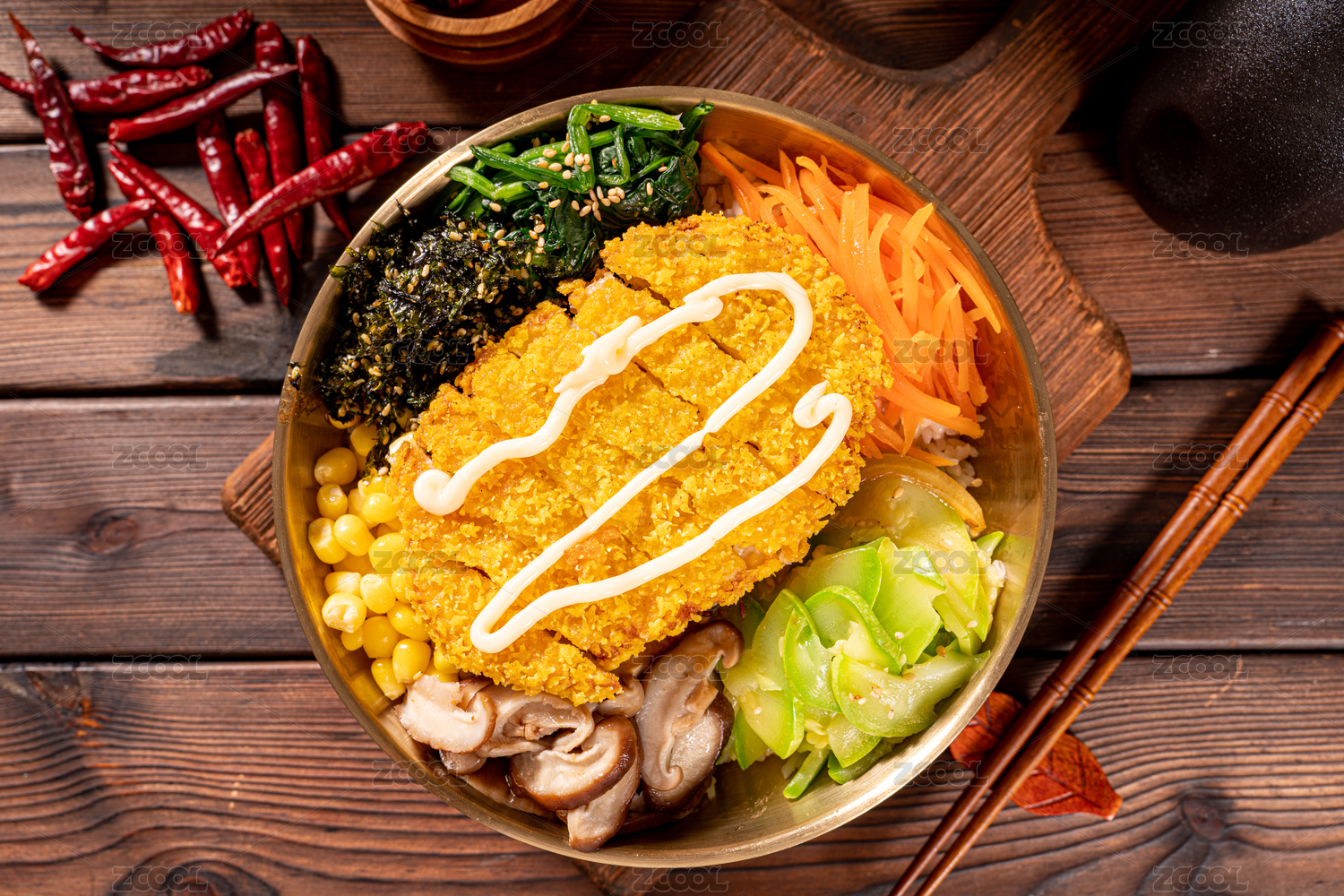木板上的豬排飯