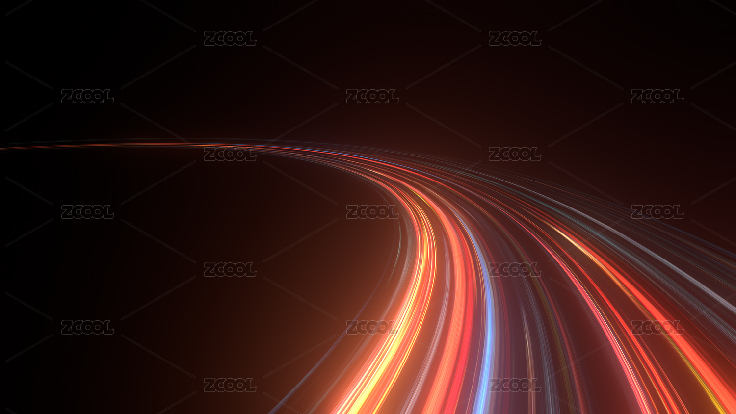 動感的科技感光線在黑色背景上穿梭