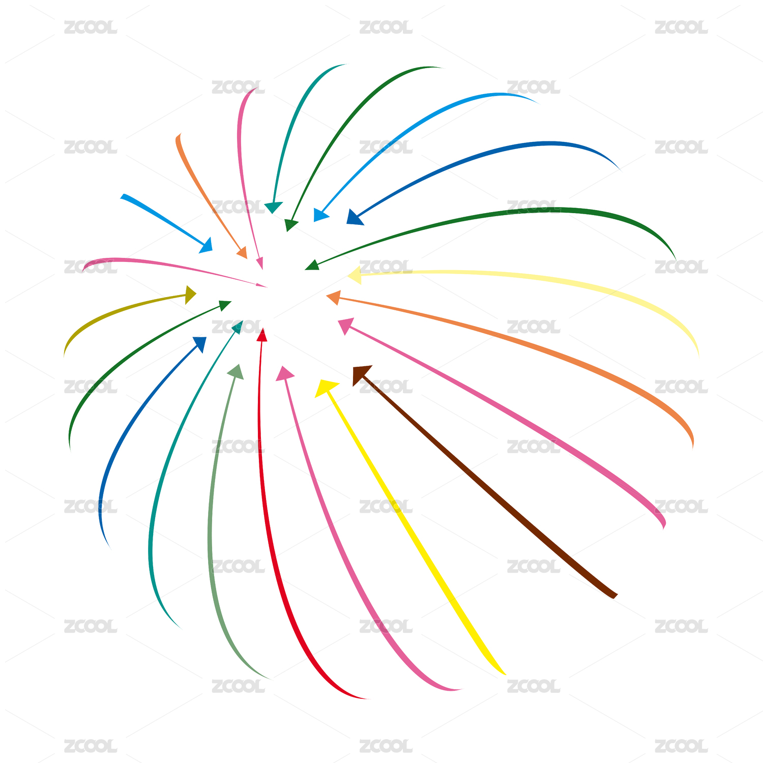 彩色帶箭頭線條由遠(yuǎn)及近匯聚于白色背景上