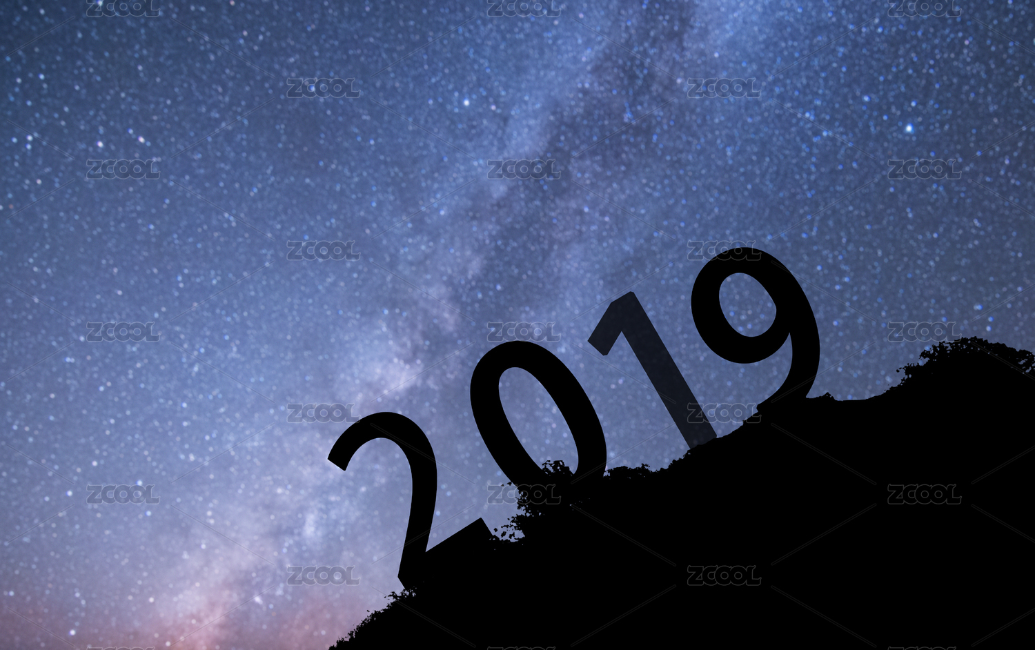 星空背景下的山坡與2019