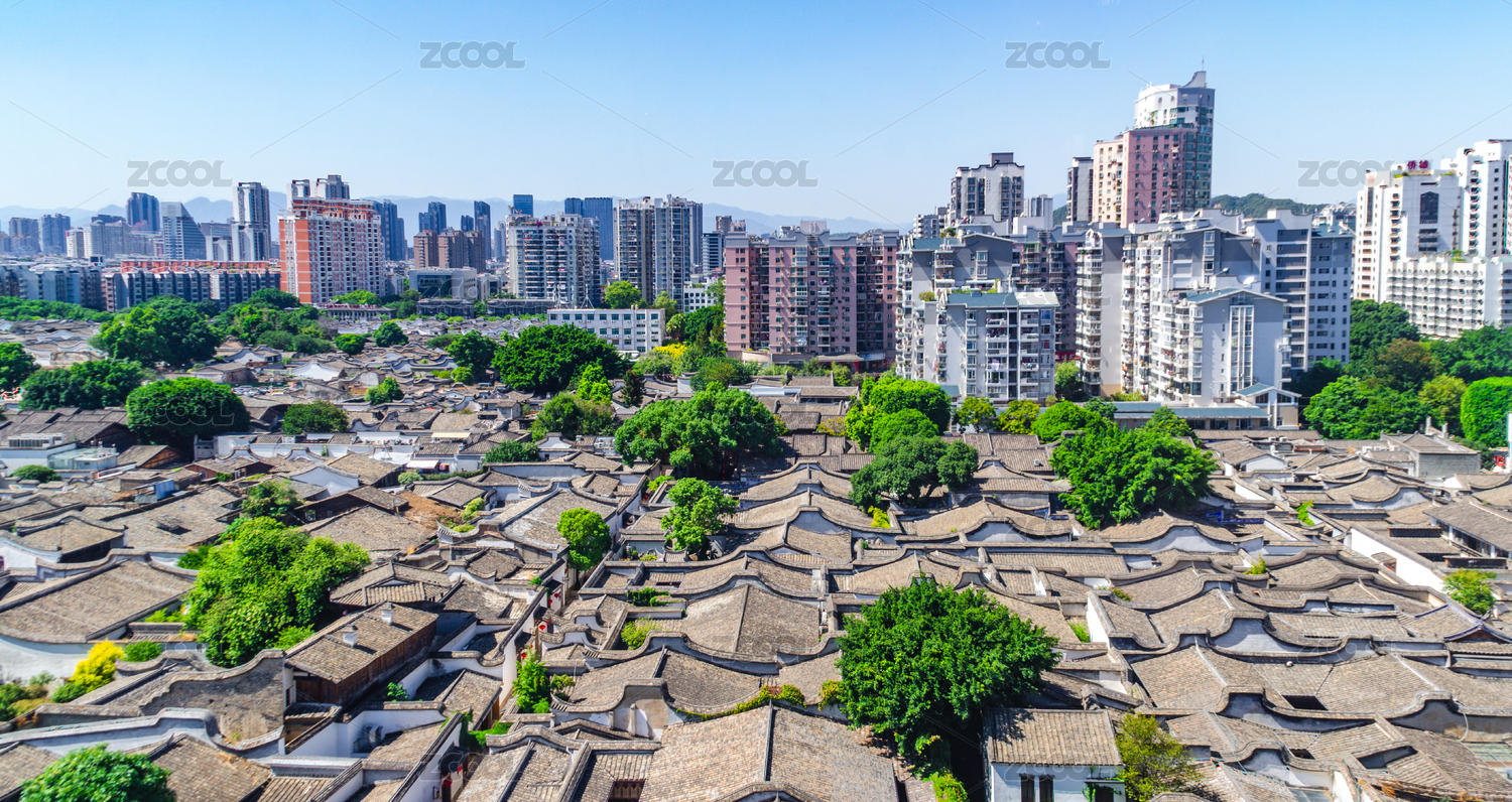 福建福州三坊七巷的明清建筑群和遠(yuǎn)處高樓
