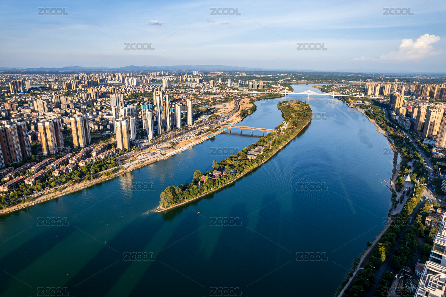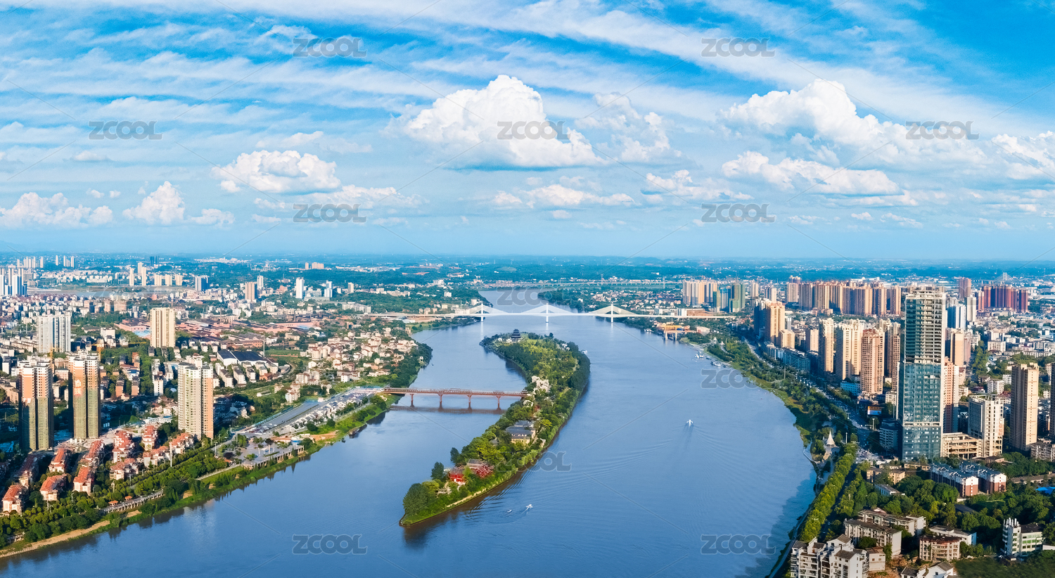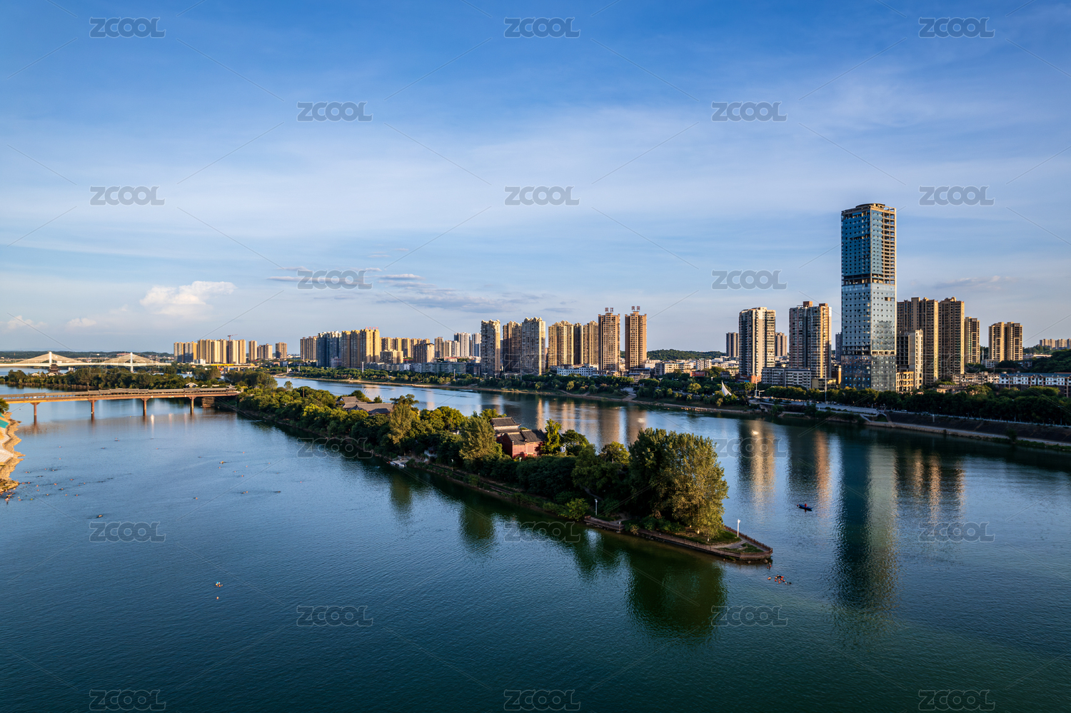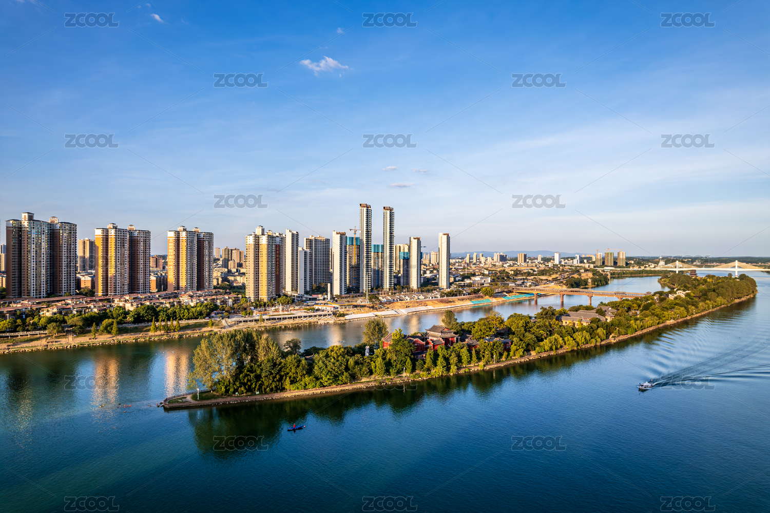 湖南衡陽湘江東洲島夏日城市風(fēng)光航拍