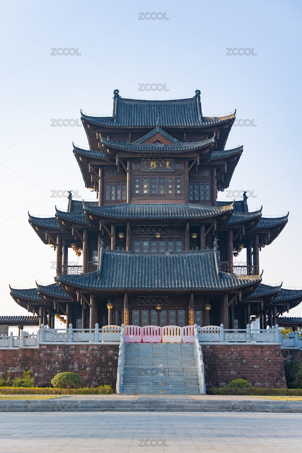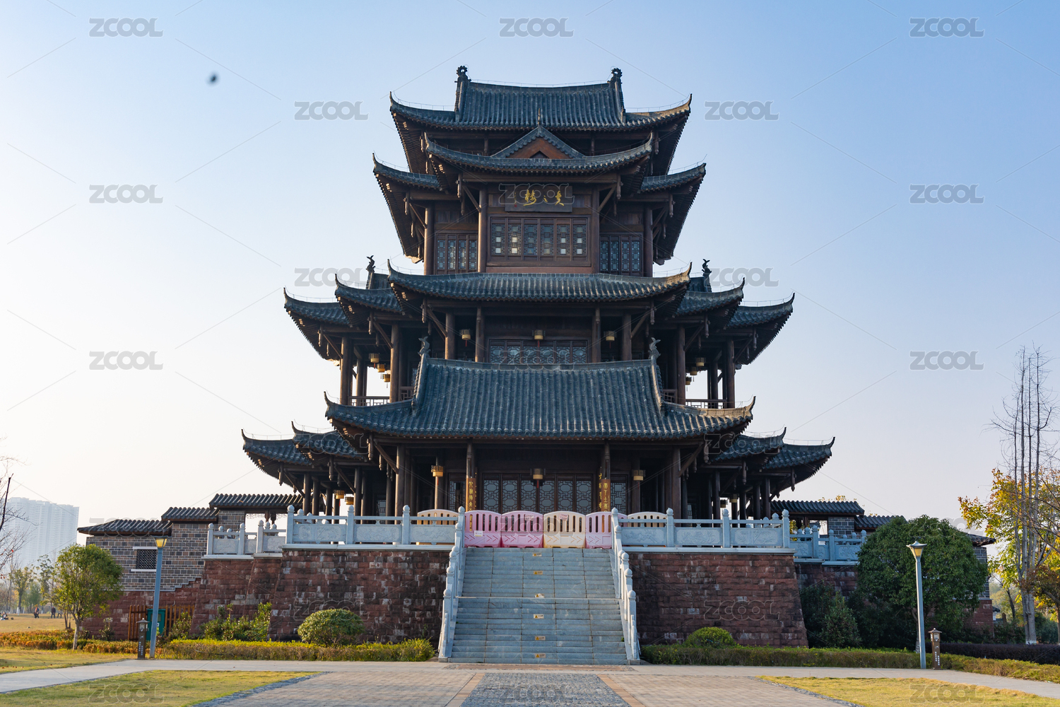 中國湖南省衡陽市東洲島景區(qū)夫子樓梨花盛開