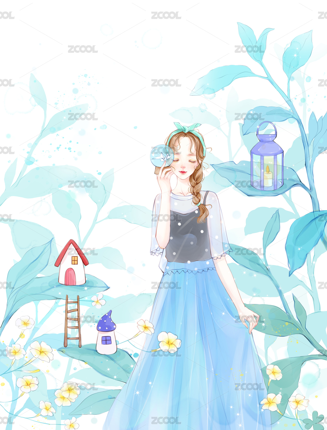 藍(lán)藍(lán)的天空下,年輕美麗少女在一望無際的綠色草原上拉小提琴放松心情插畫背景