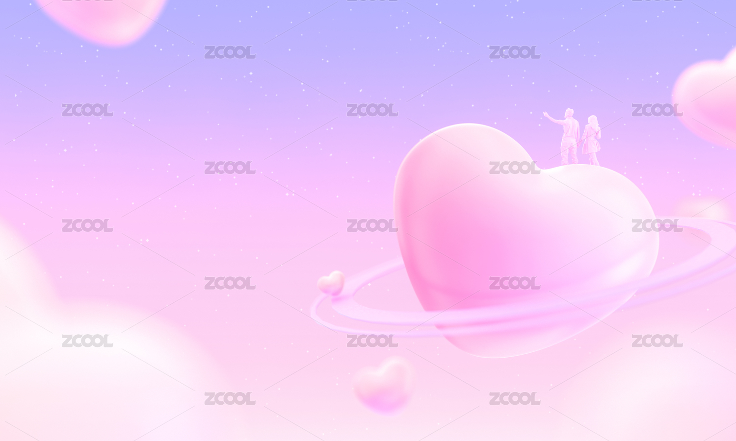 粉紫色背景中的愛心情人節(jié)七夕情侶星球