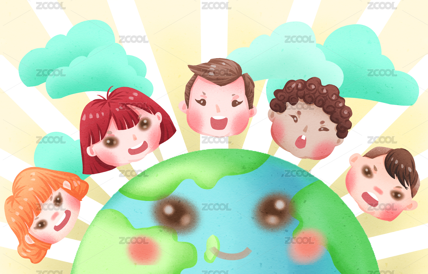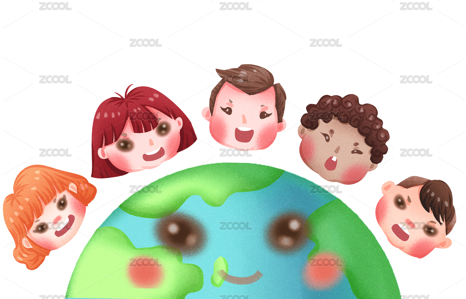 世界人口日地球媽媽各國兒童可愛矢量插畫