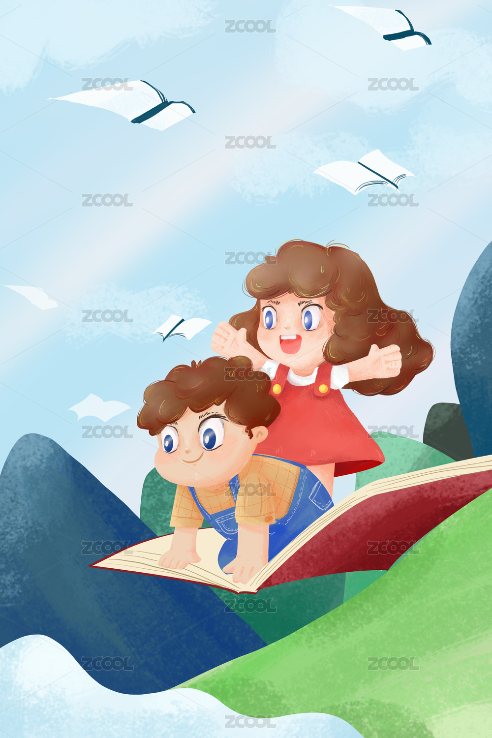 父親節(jié)兒童節(jié)手繪插畫親子閱讀黃色植物海報