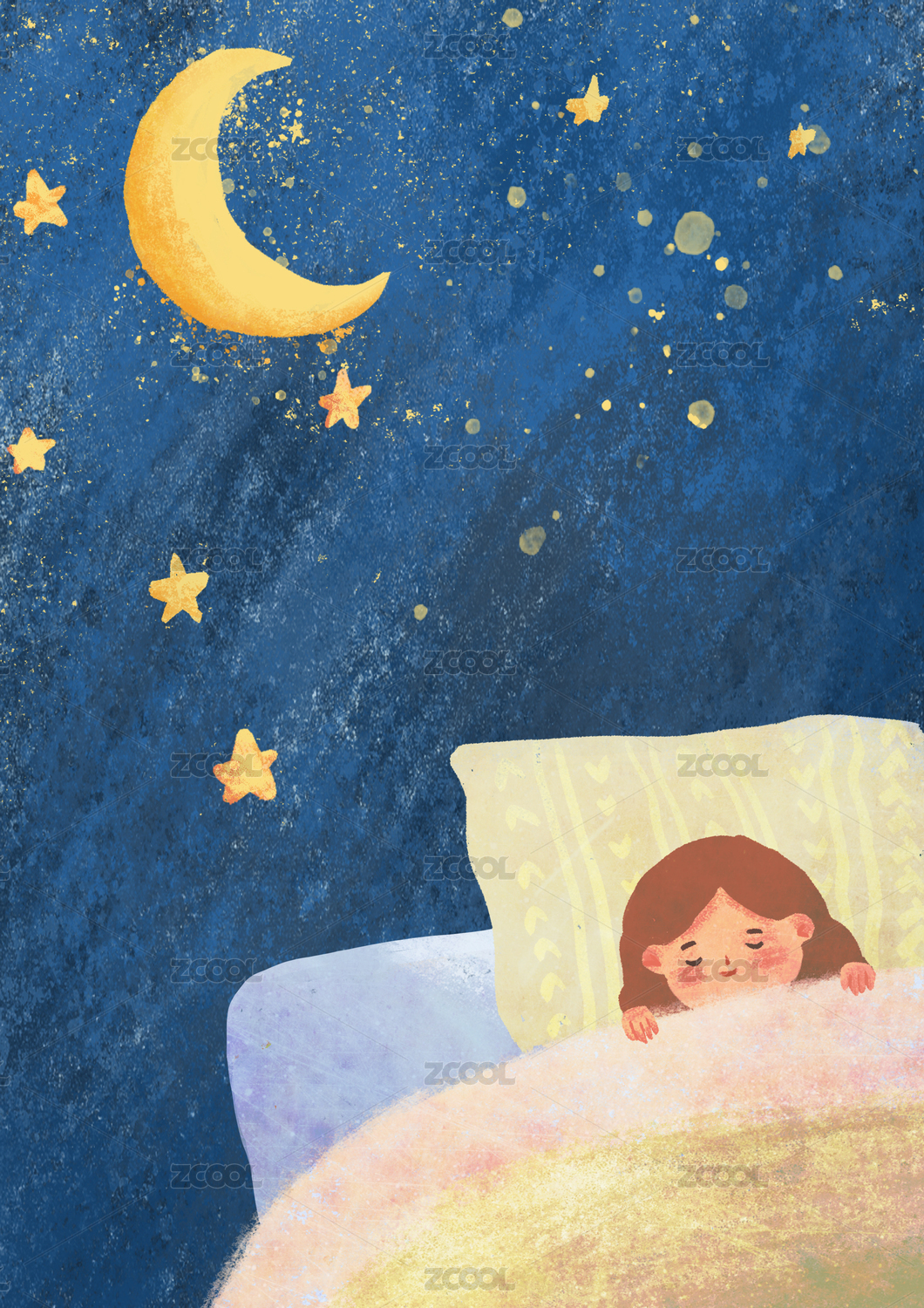 世界睡眠日女孩睡覺做美夢熟睡夢境入眠插畫