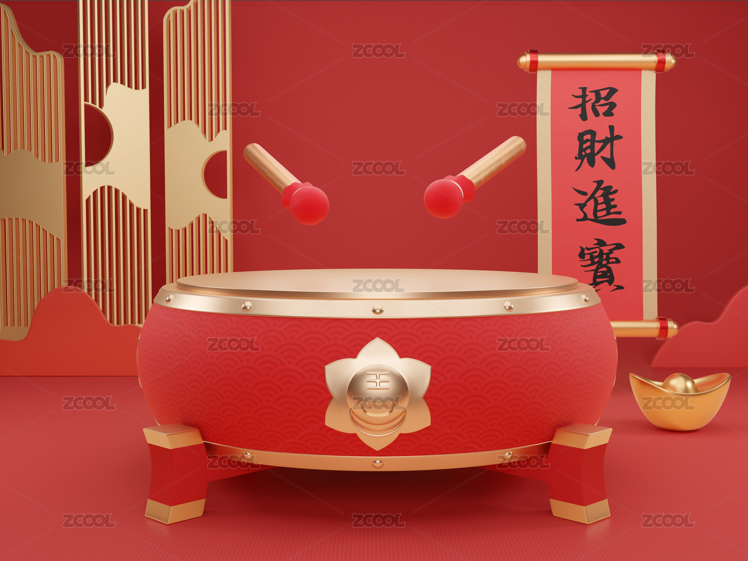 傳統(tǒng)春節(jié)演出表演紅皮虎年大鼓