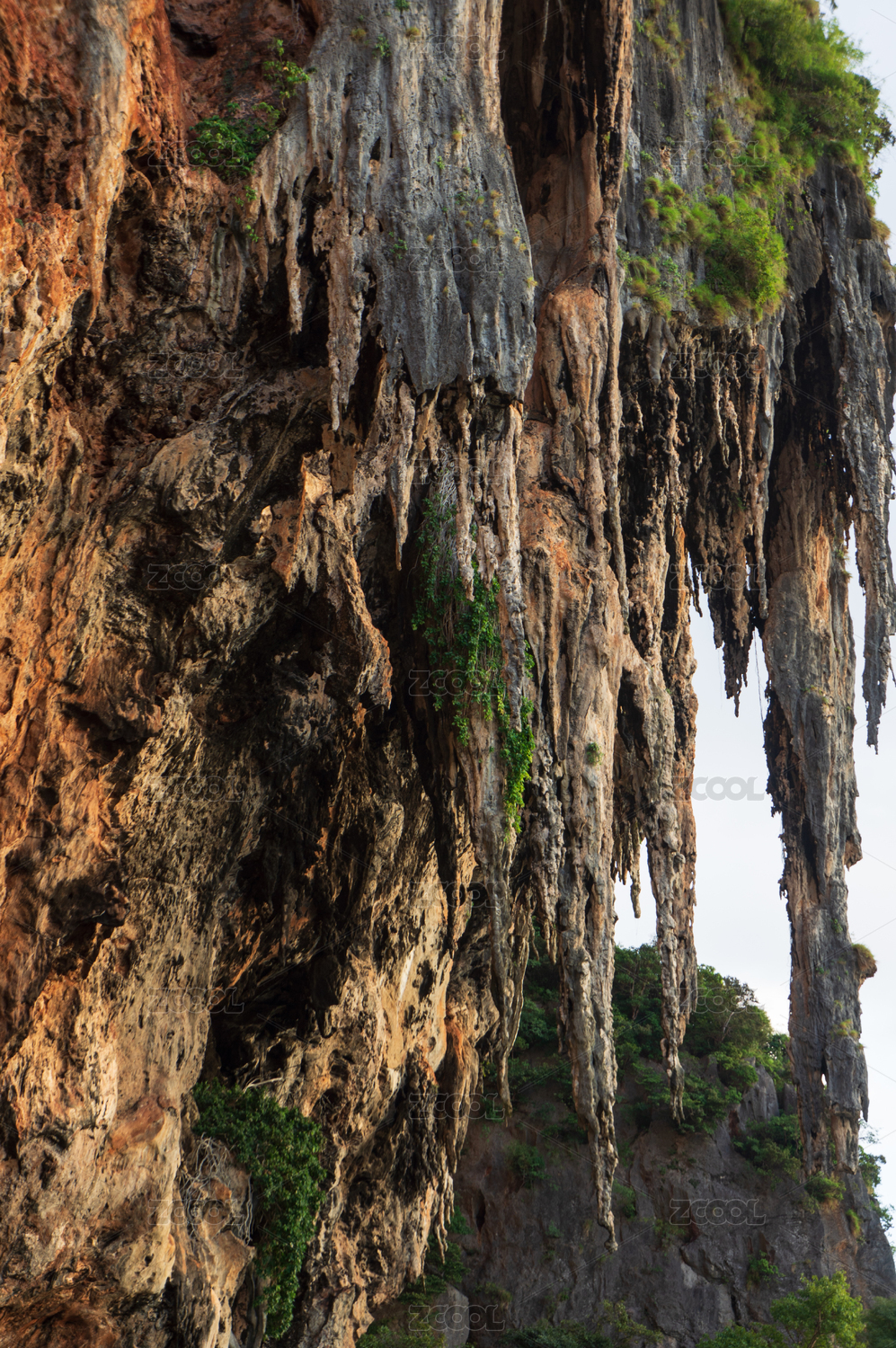 泰國甲米萊利島海邊怪石嶙峋的喀斯特地貌