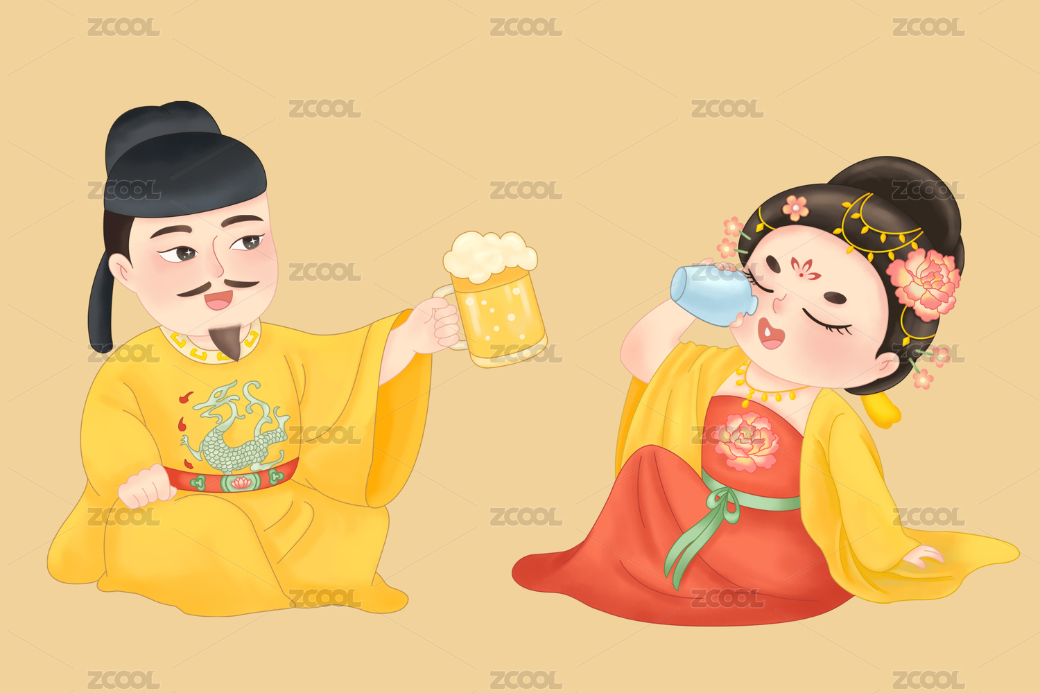 唐朝皇帝貴妃醉酒對(duì)飲及時(shí)行樂聚會(huì)喝酒