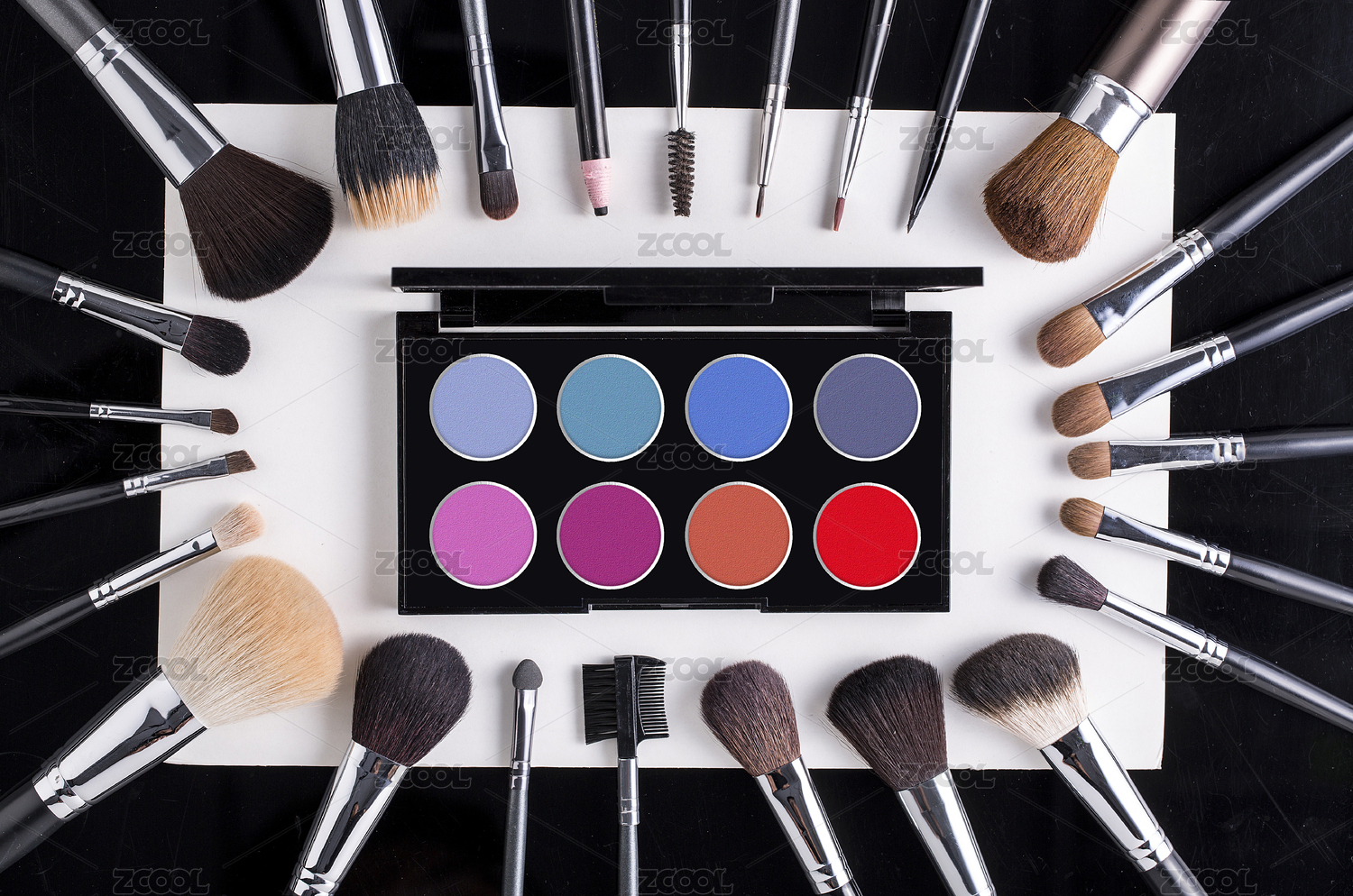 彩妝工具刷子和眼影色盤(pán)