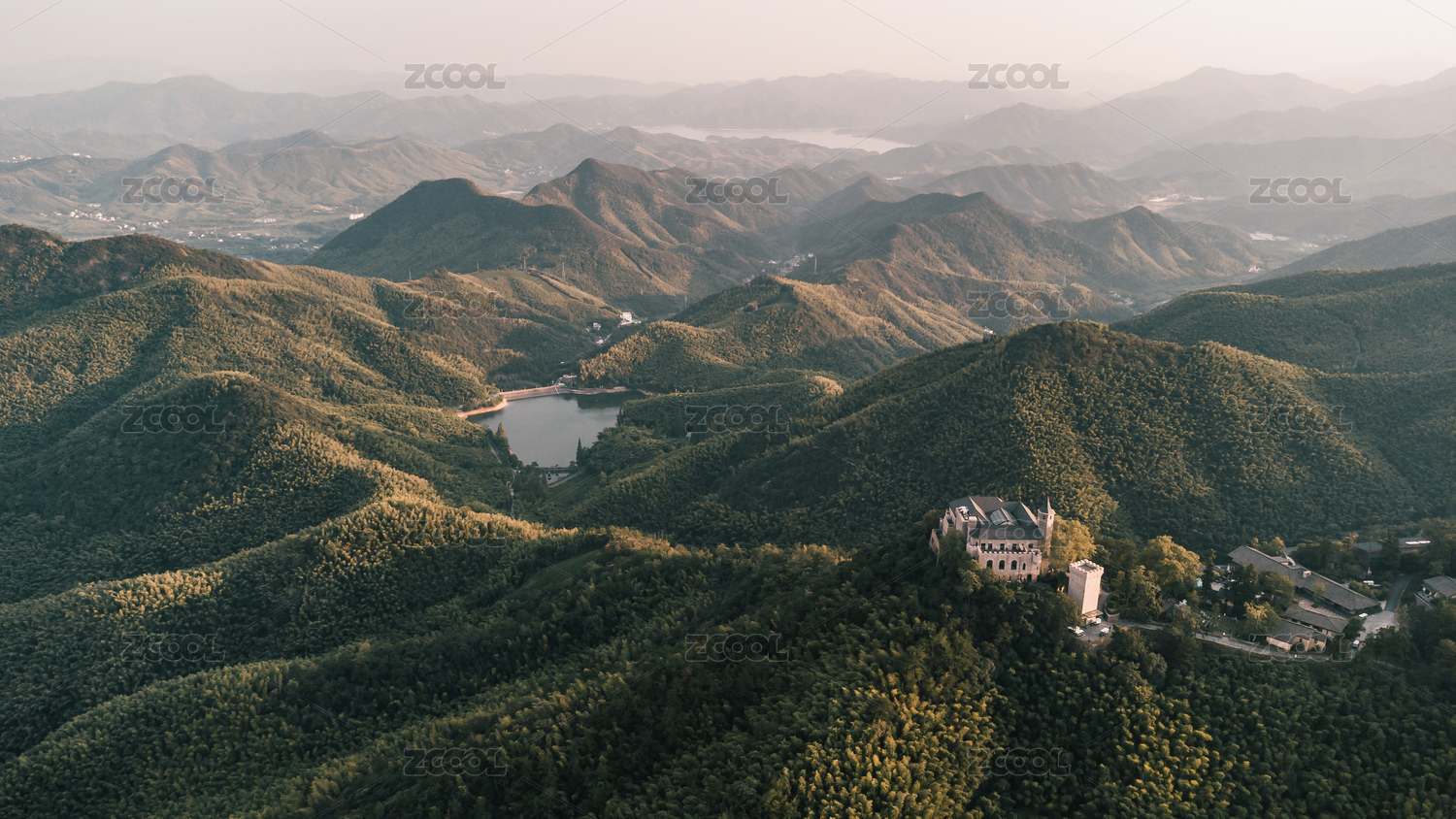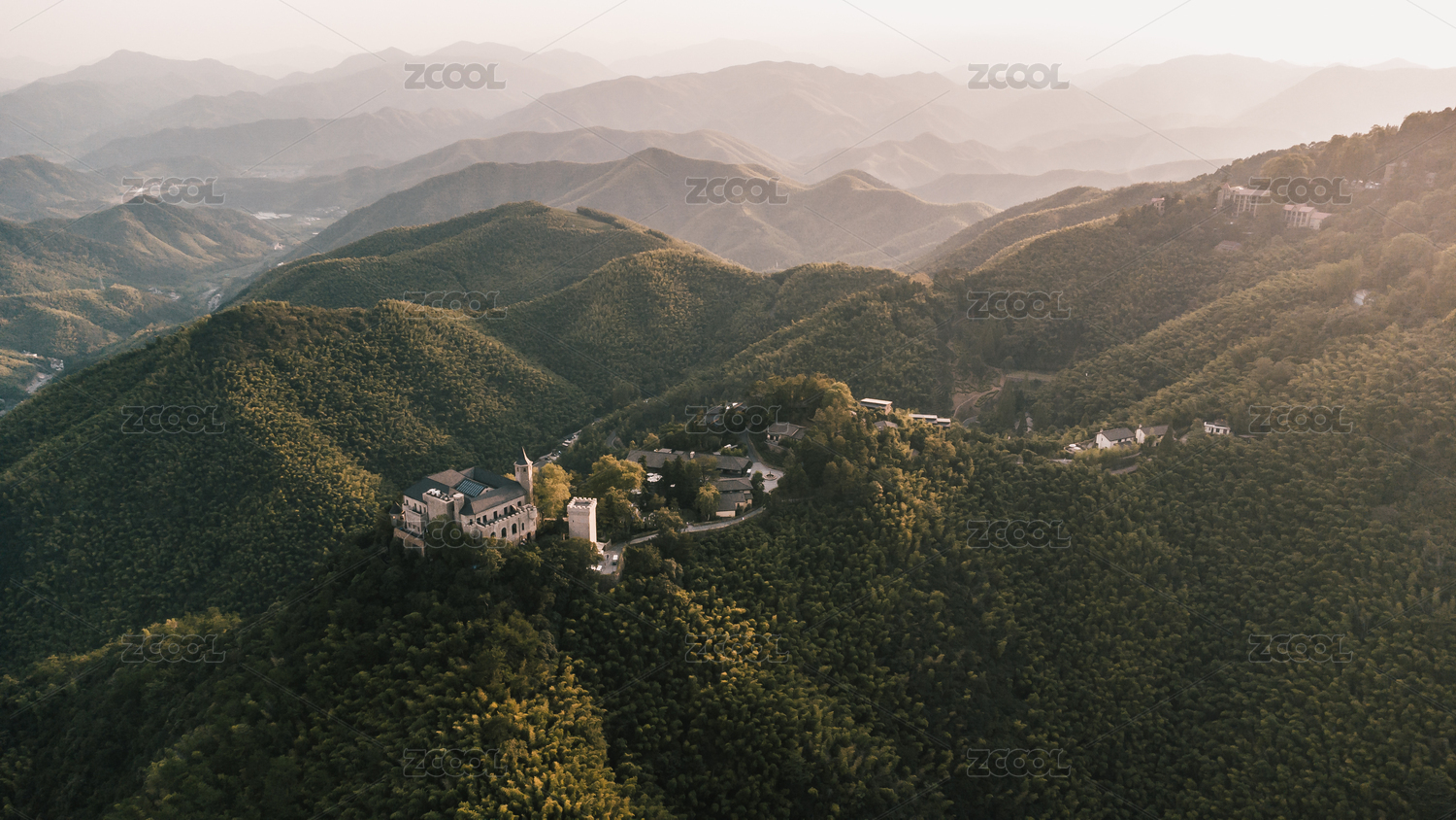 航拍湖州莫干山山頂別墅自然建筑風(fēng)光