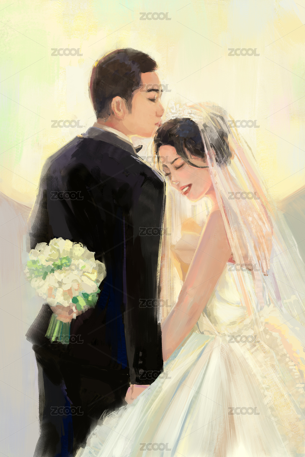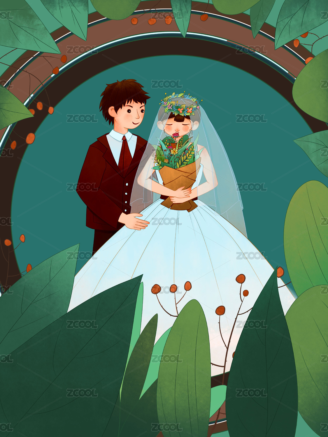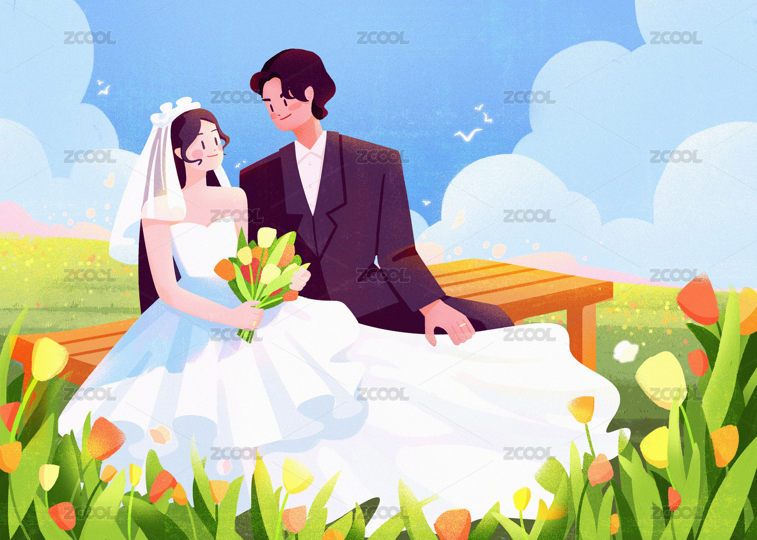 唯美婚紗照小清新插畫