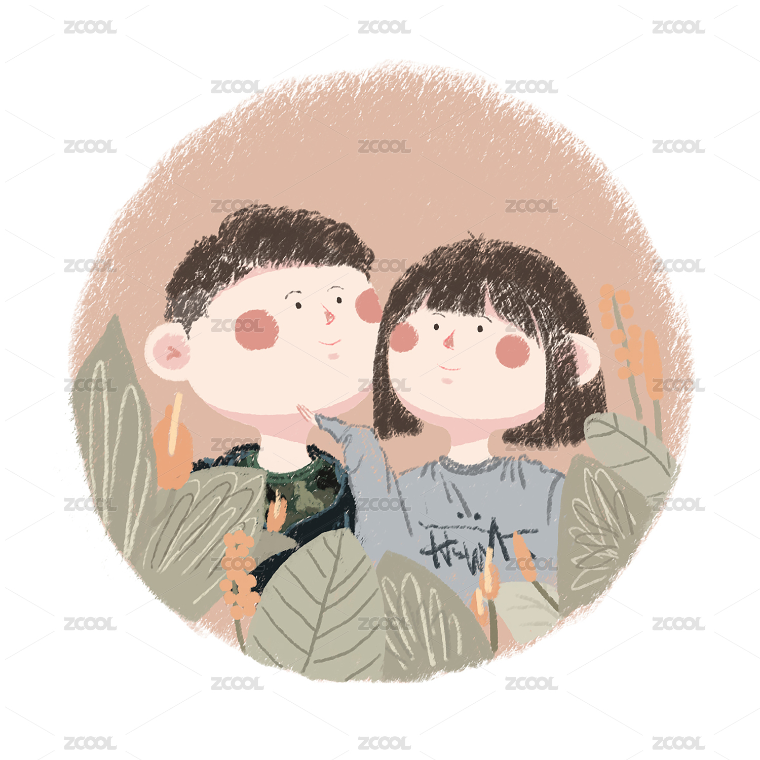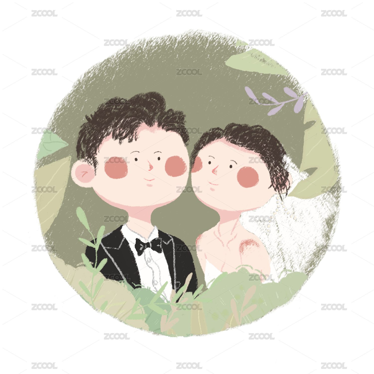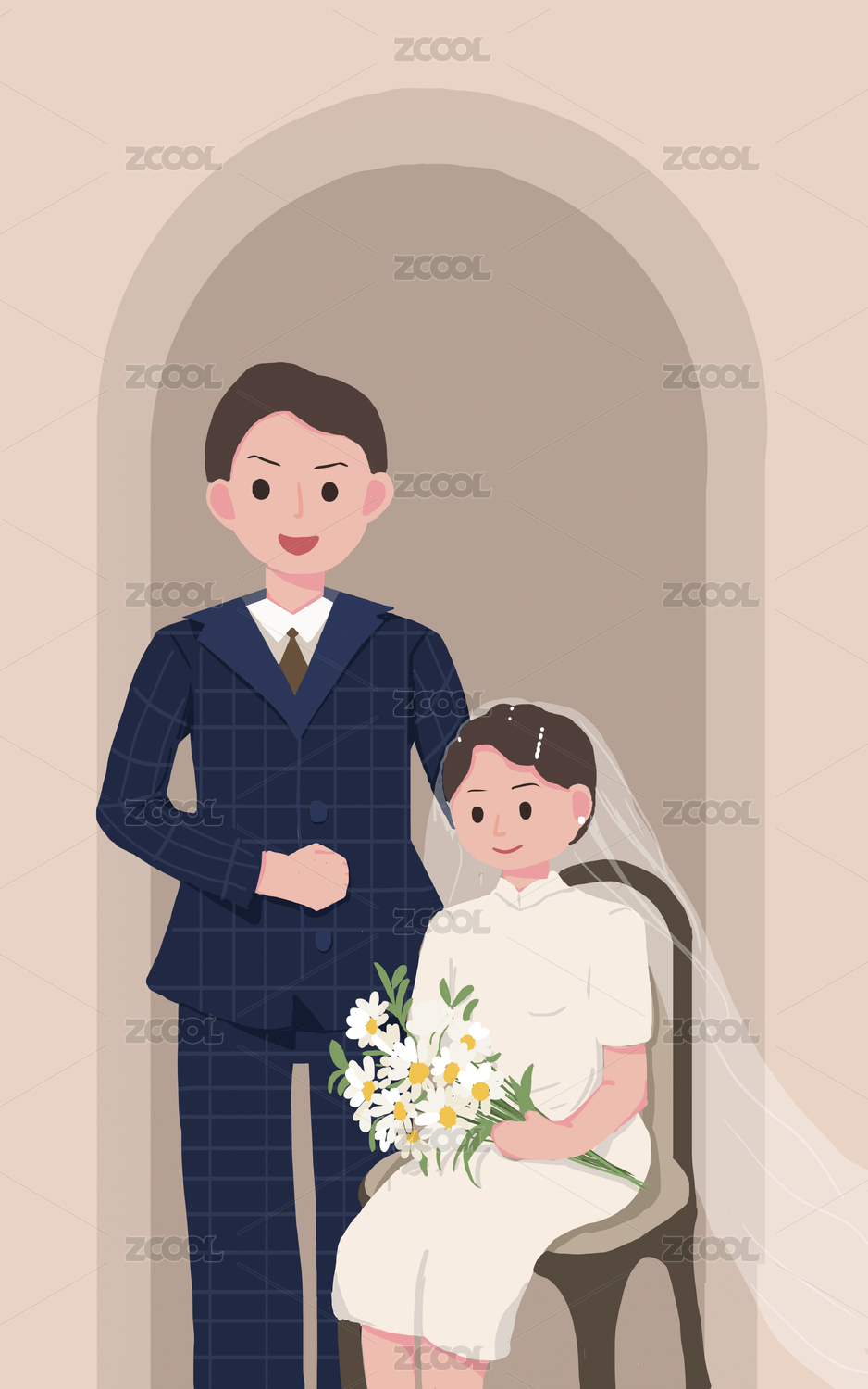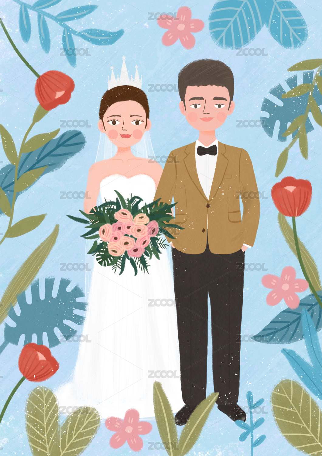 小清新風(fēng)格婚紗照插畫