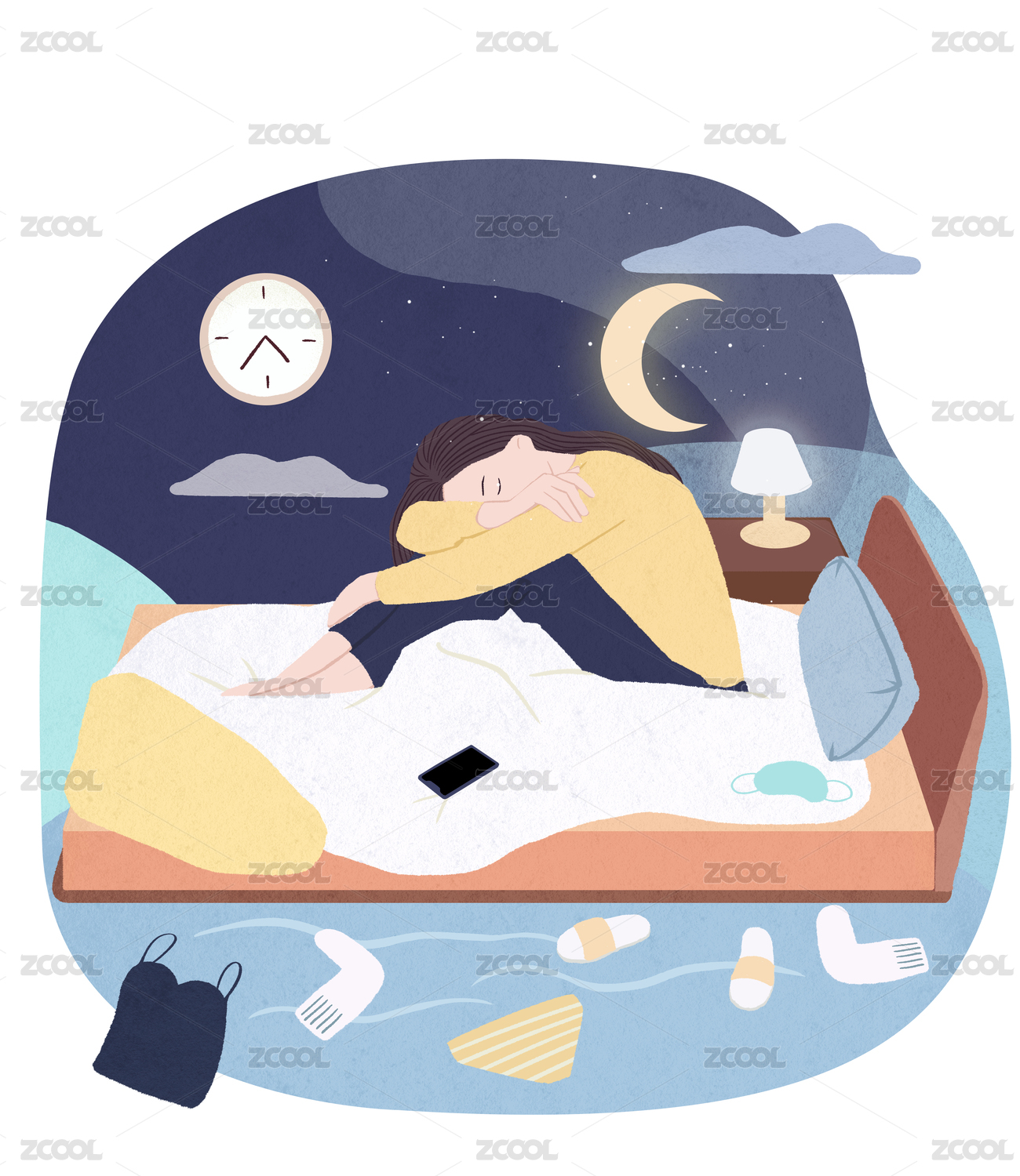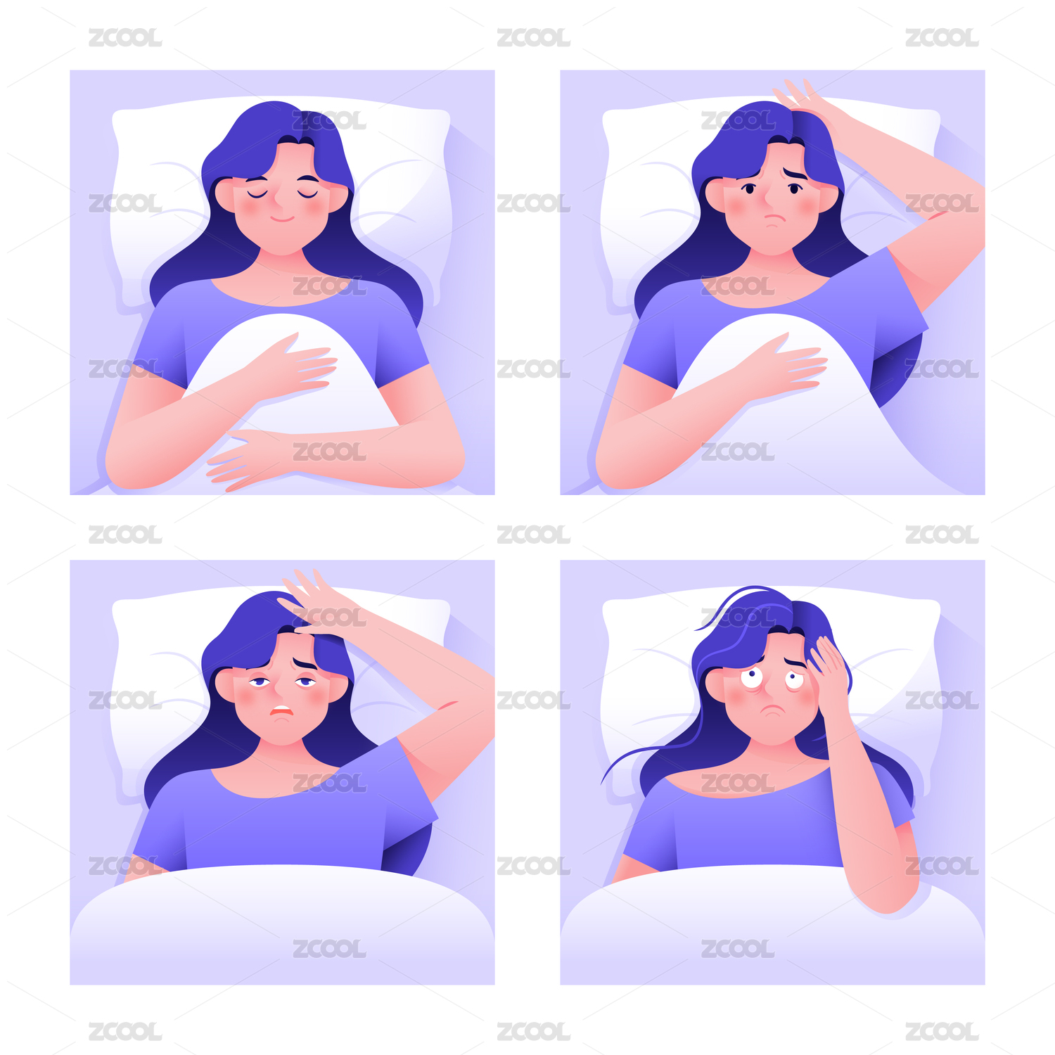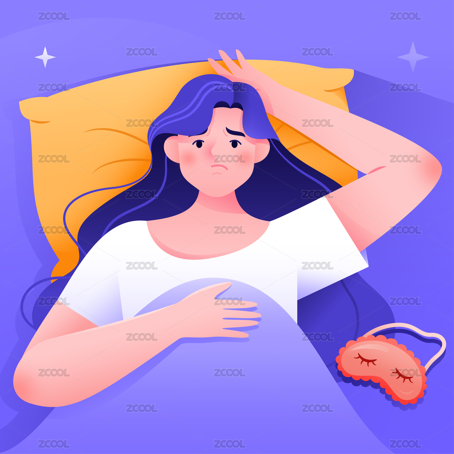 女生躺在床上無法入睡失眠嚴(yán)重程度矢量插畫