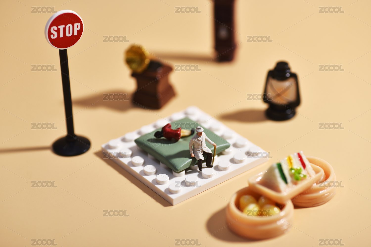 微縮創(chuàng)意攝影橘色背景上的小人偶關(guān)于失眠