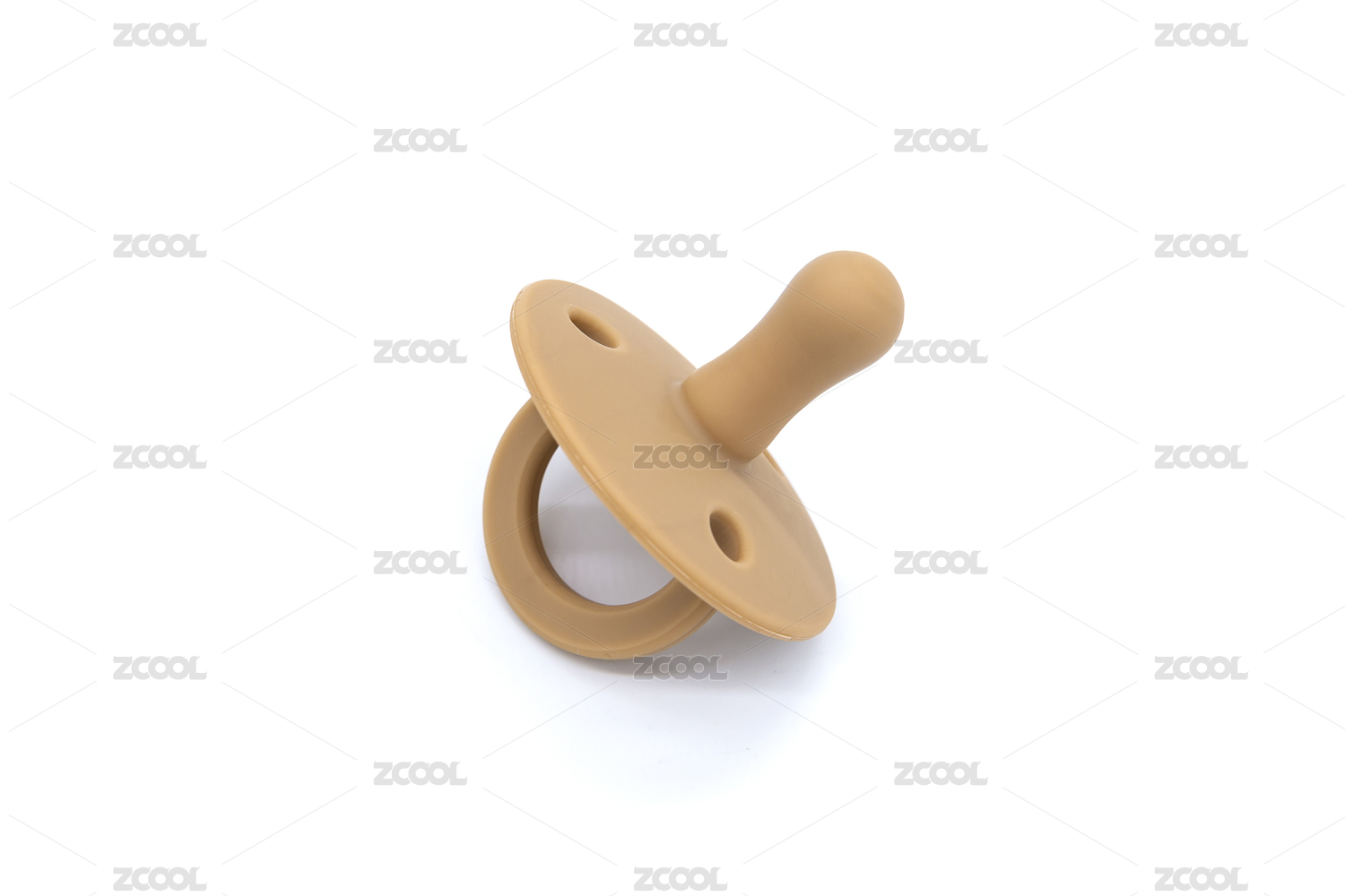 白色背景上的嬰兒用棕色硅膠奶嘴