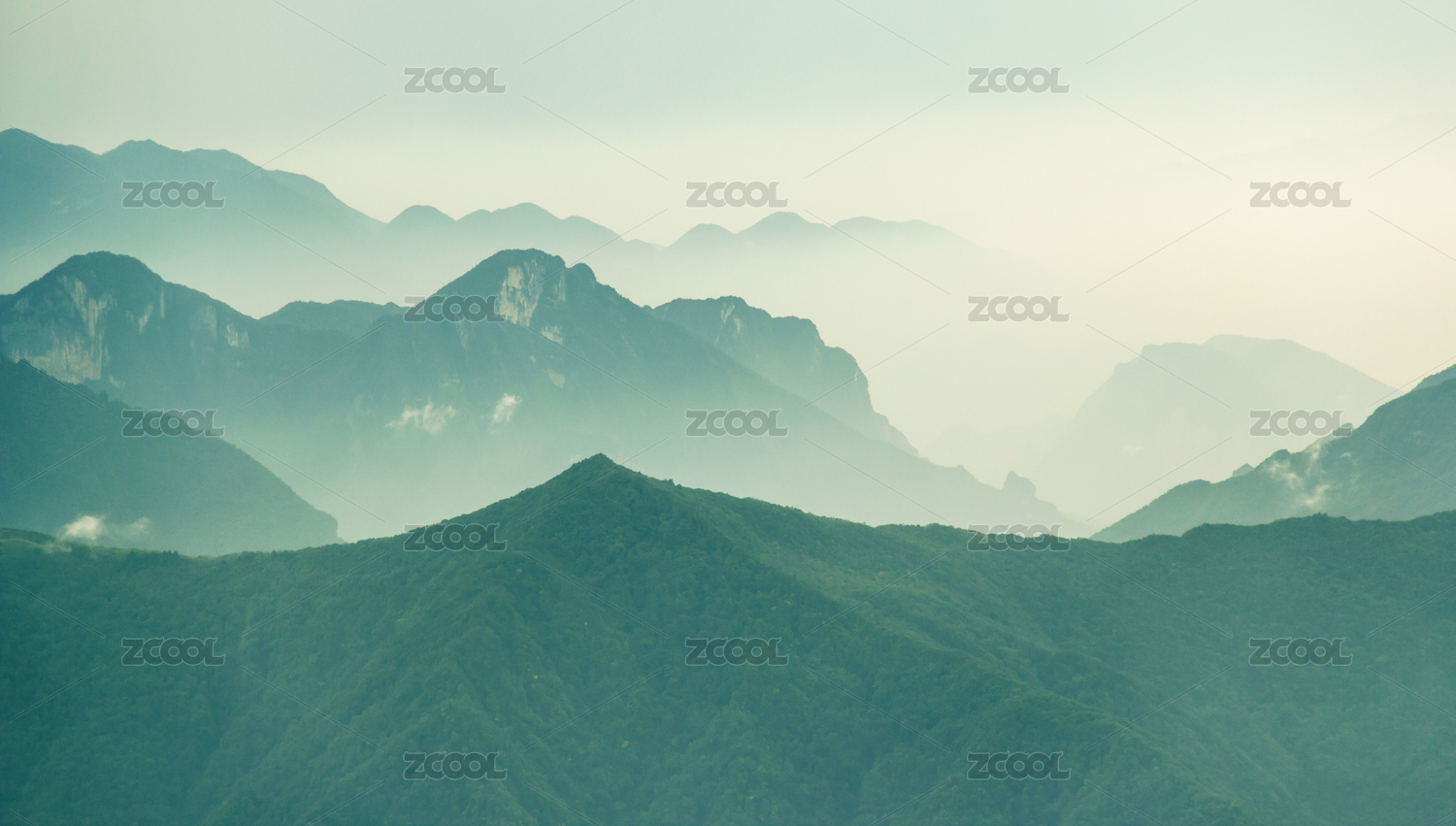 籠罩在薄霧中的中國湖北省神龍架林區(qū)群山