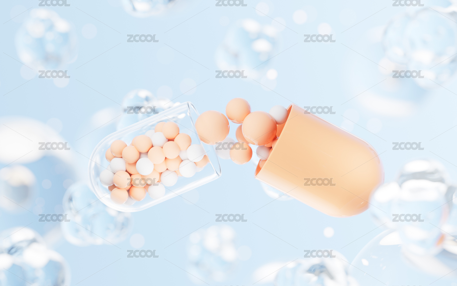 醫(yī)藥膠囊生物制藥概念3D渲染