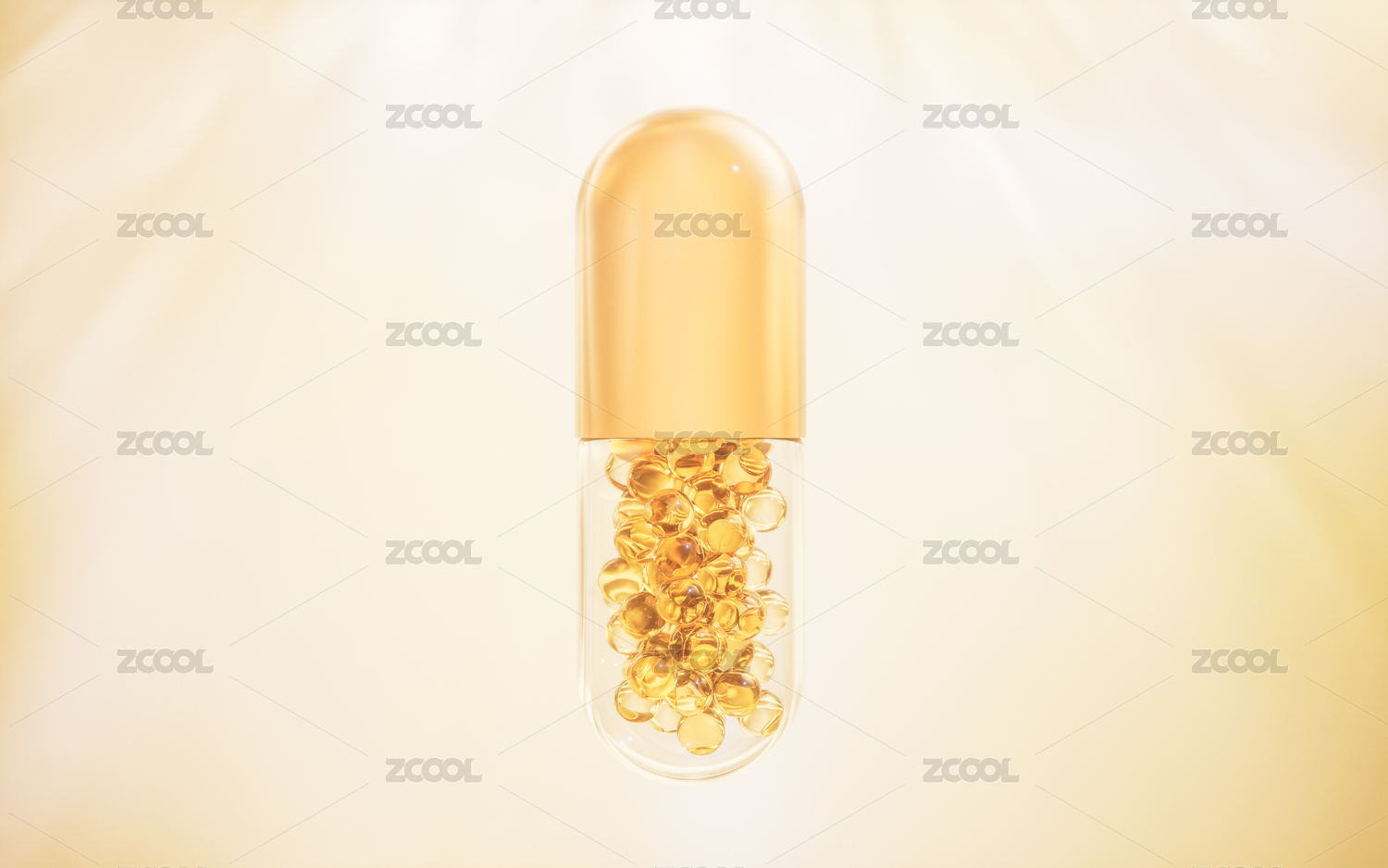金色保健品膠囊3D渲染