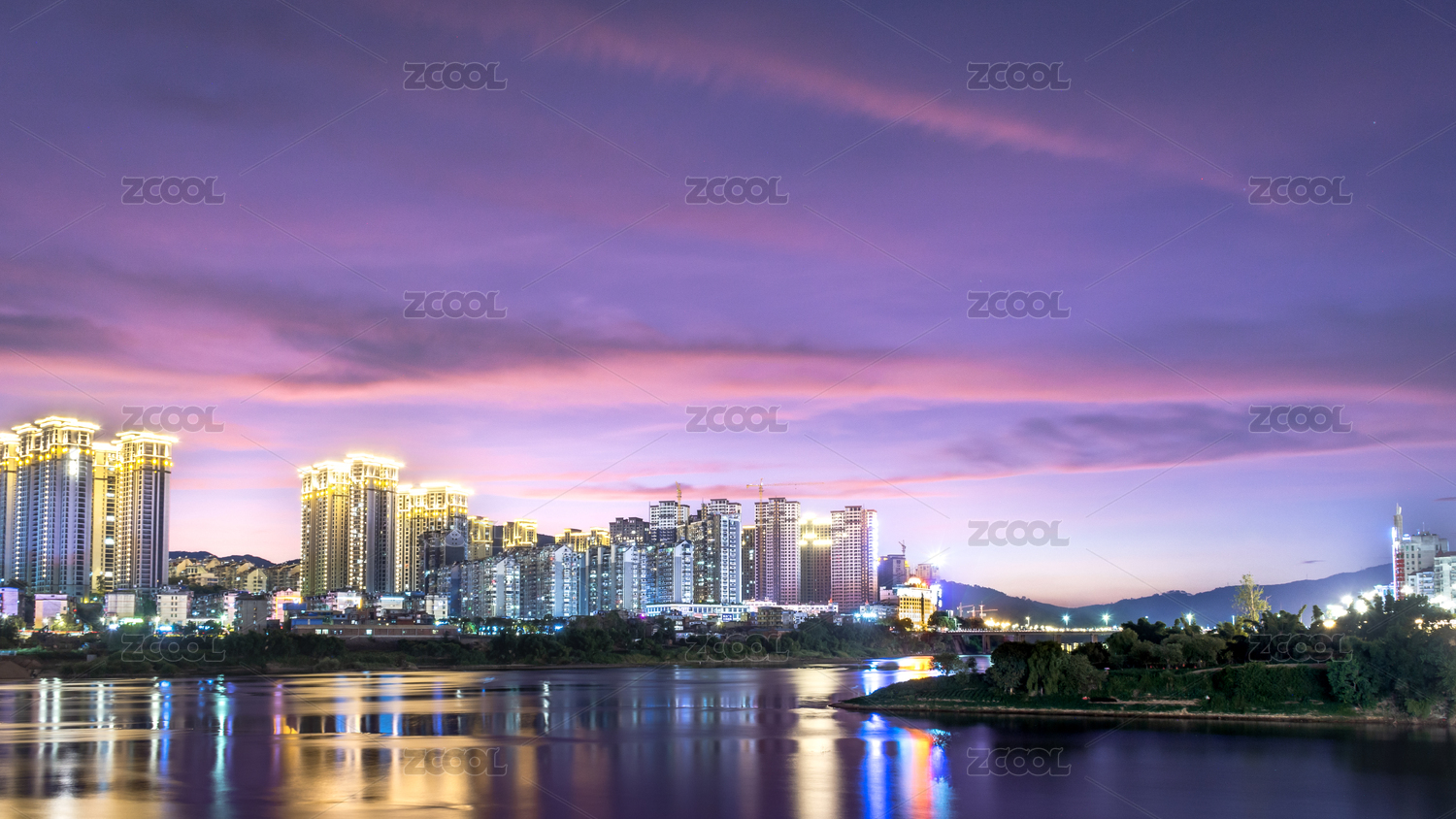 中國湖北宜昌夕陽西下到華燈初上