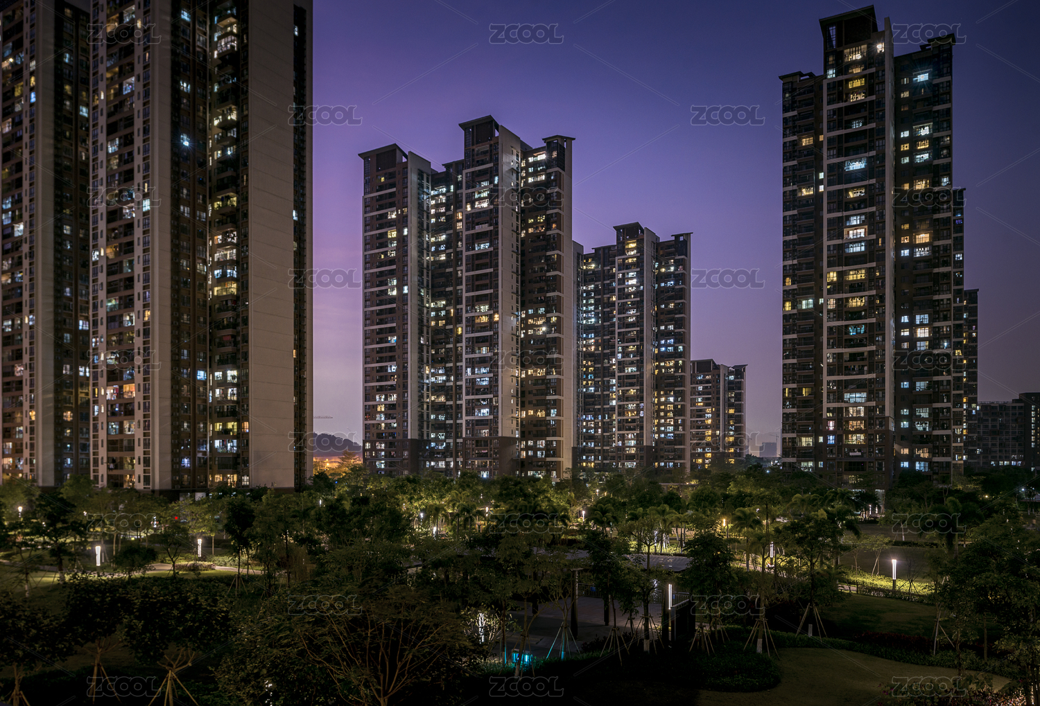 華燈初上的小區(qū)
