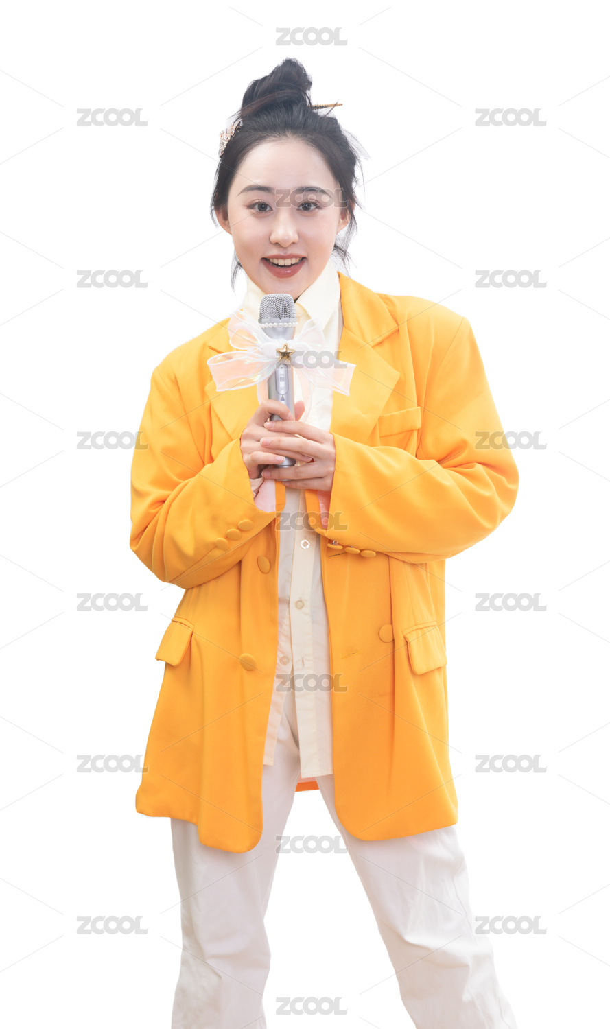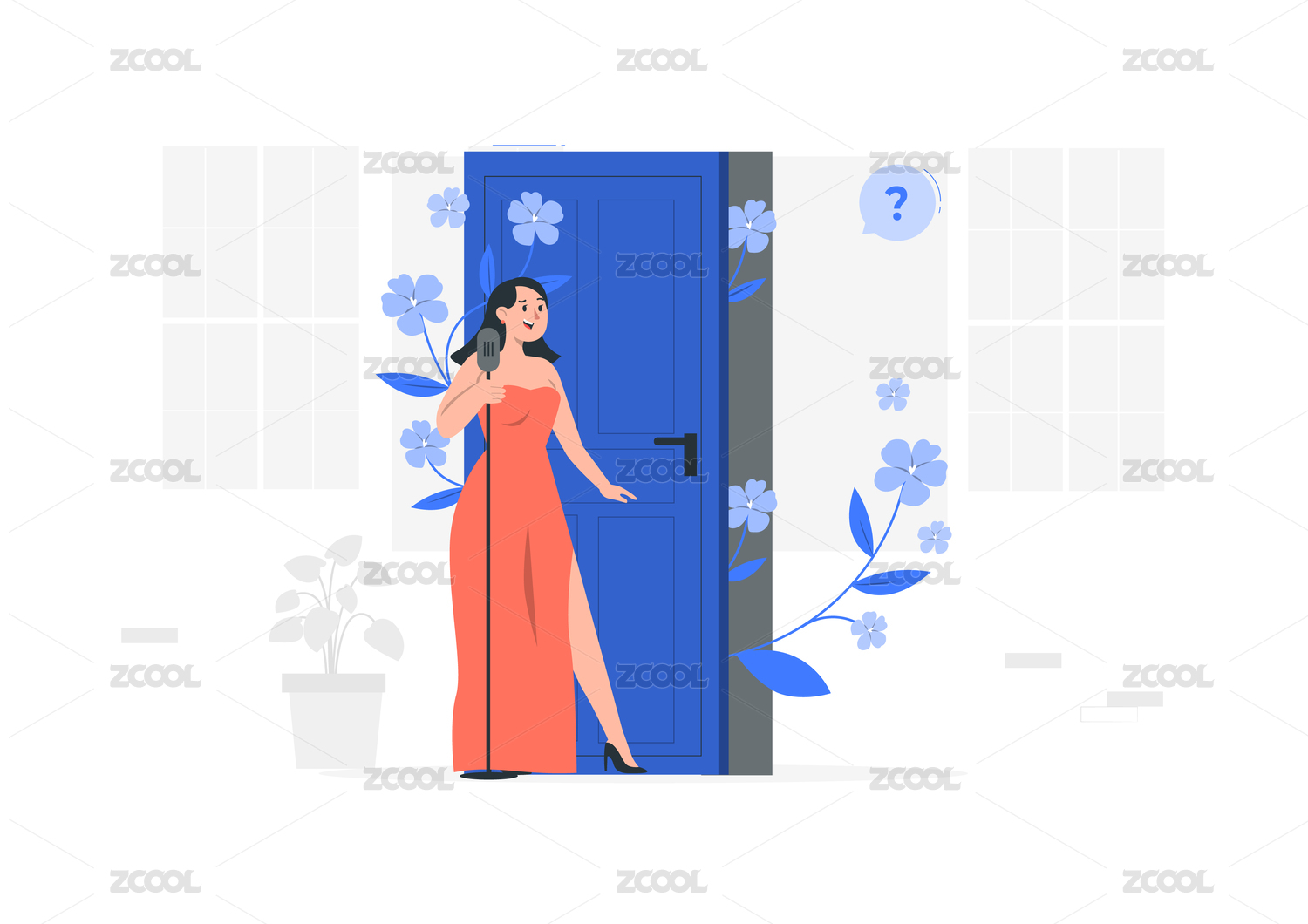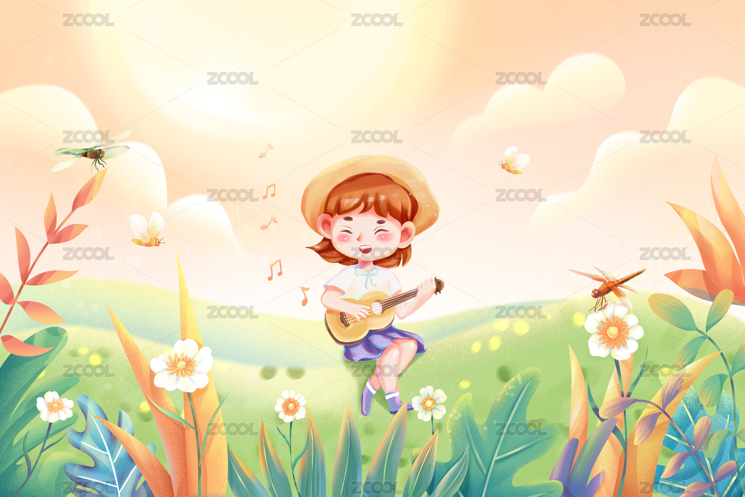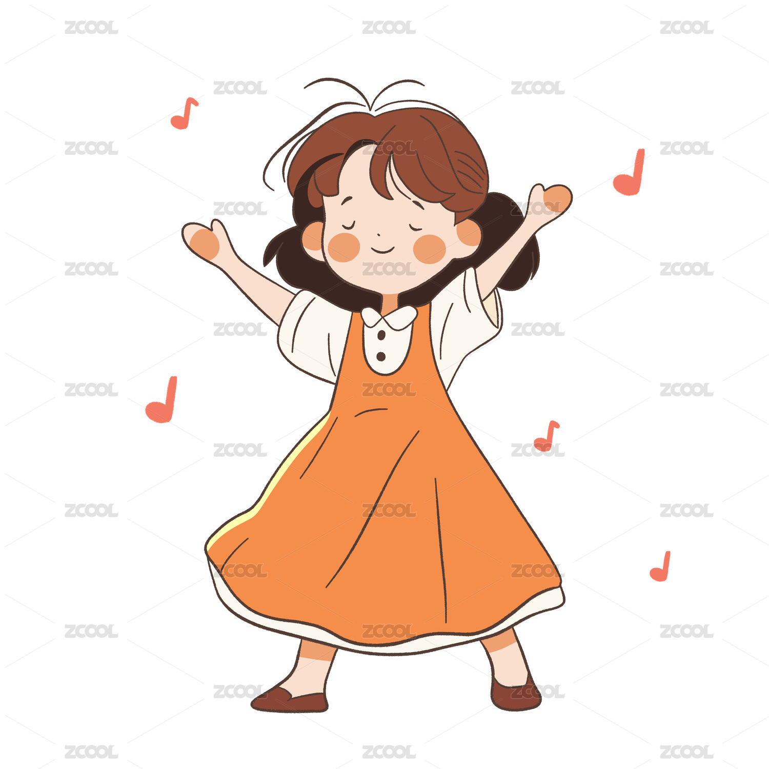 邊唱邊跳的女孩開心歌唱音樂符號人物插畫