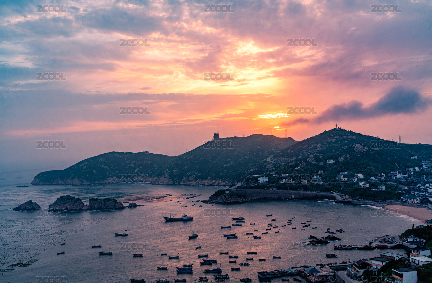 中國浙江舟山嵊泗枸杞島日落火燒云