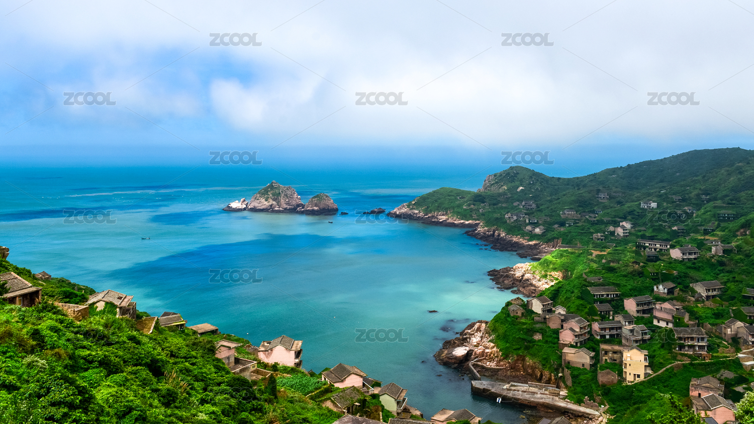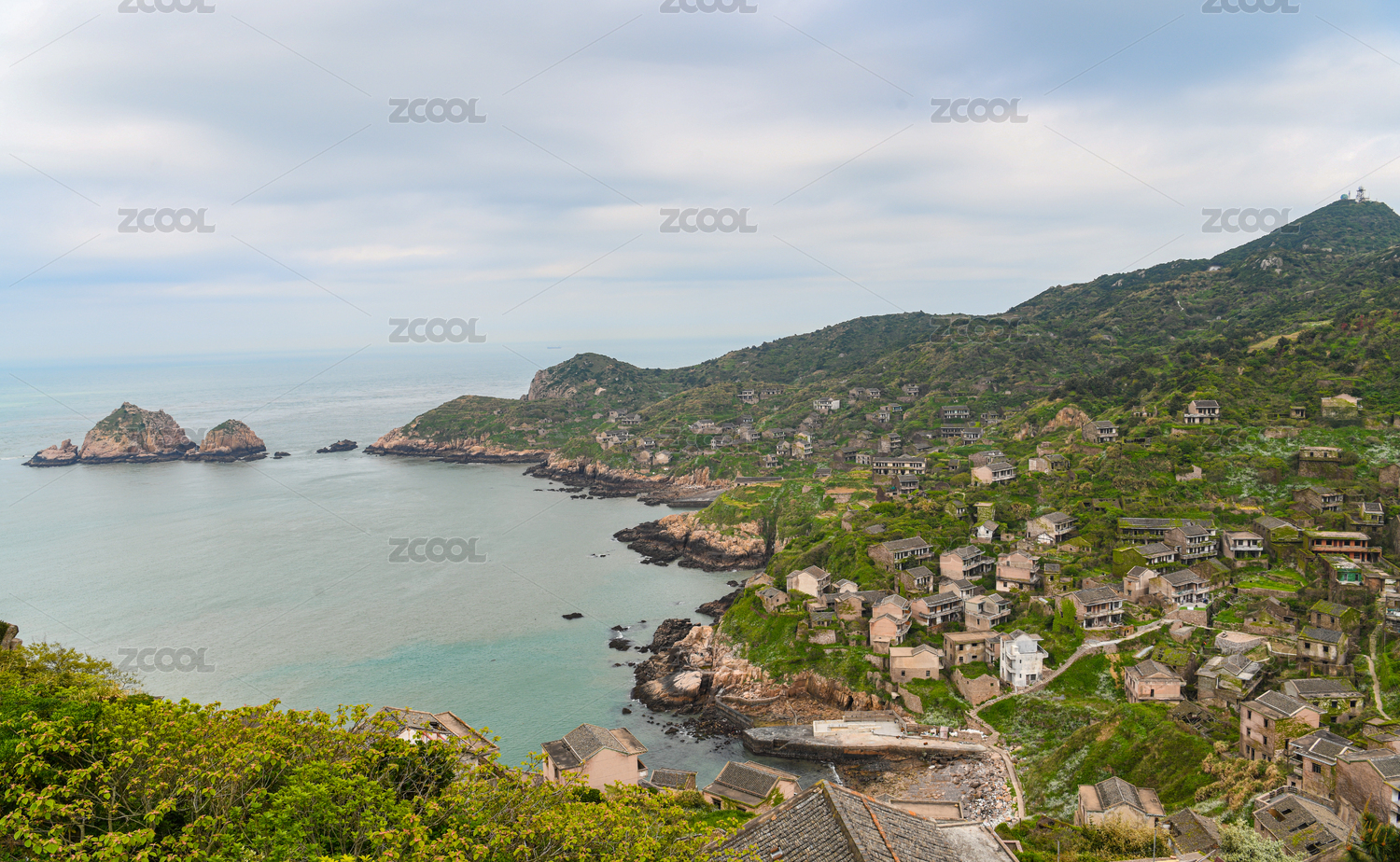 中國浙江嵊泗縣枸杞島無人村鬼村雨天遠(yuǎn)眺特寫