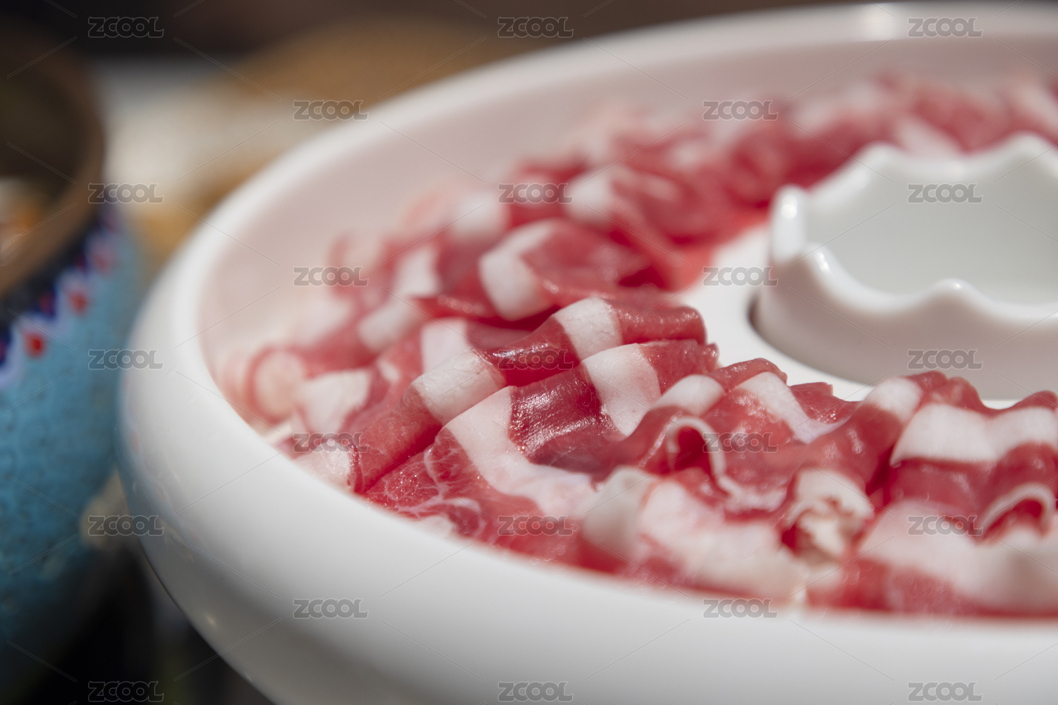 牛肉火鍋店里切好待上的生牛肉