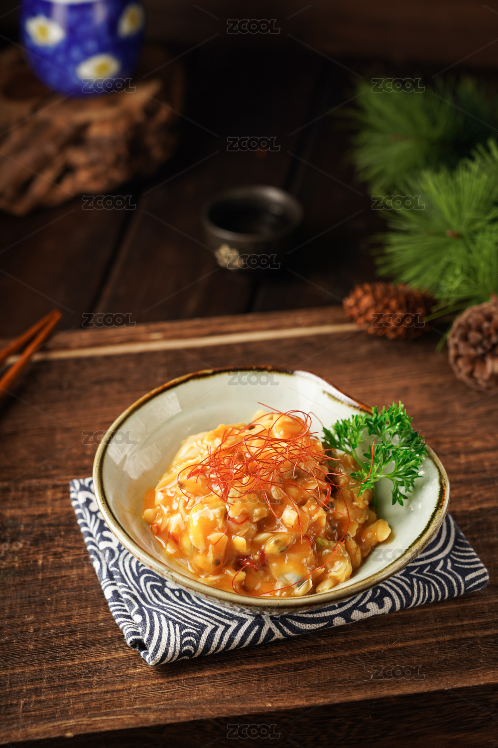 日式盤(pán)子里的日餐料理日式小菜海草